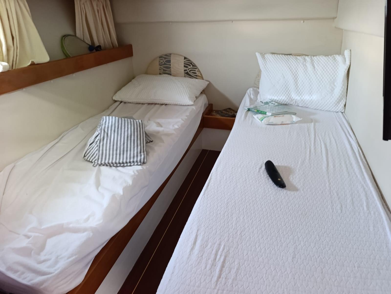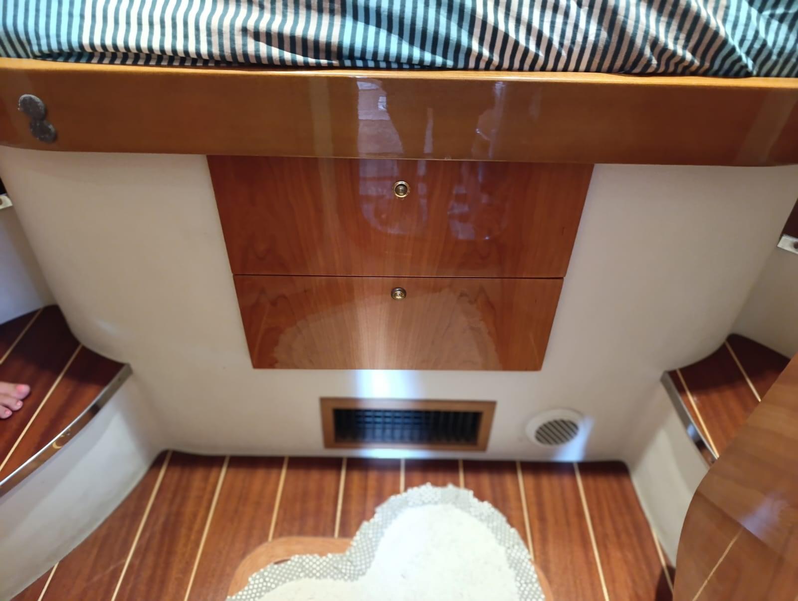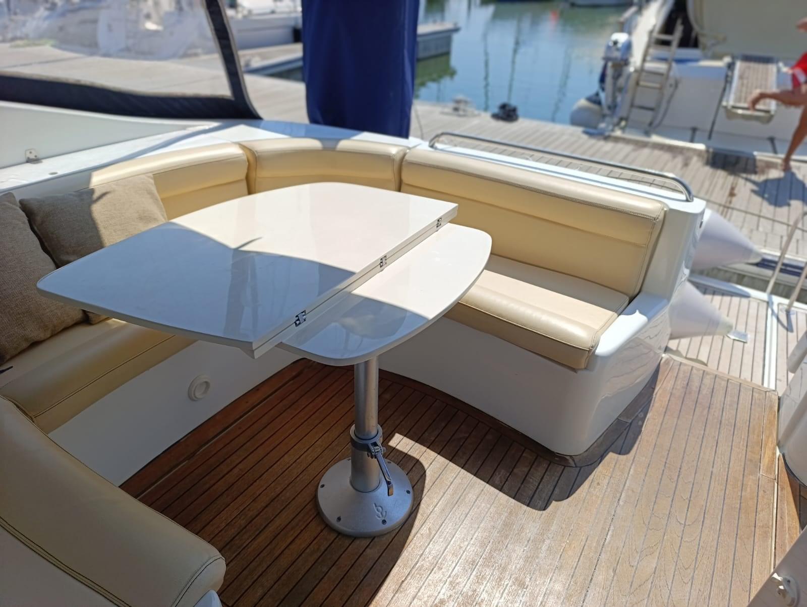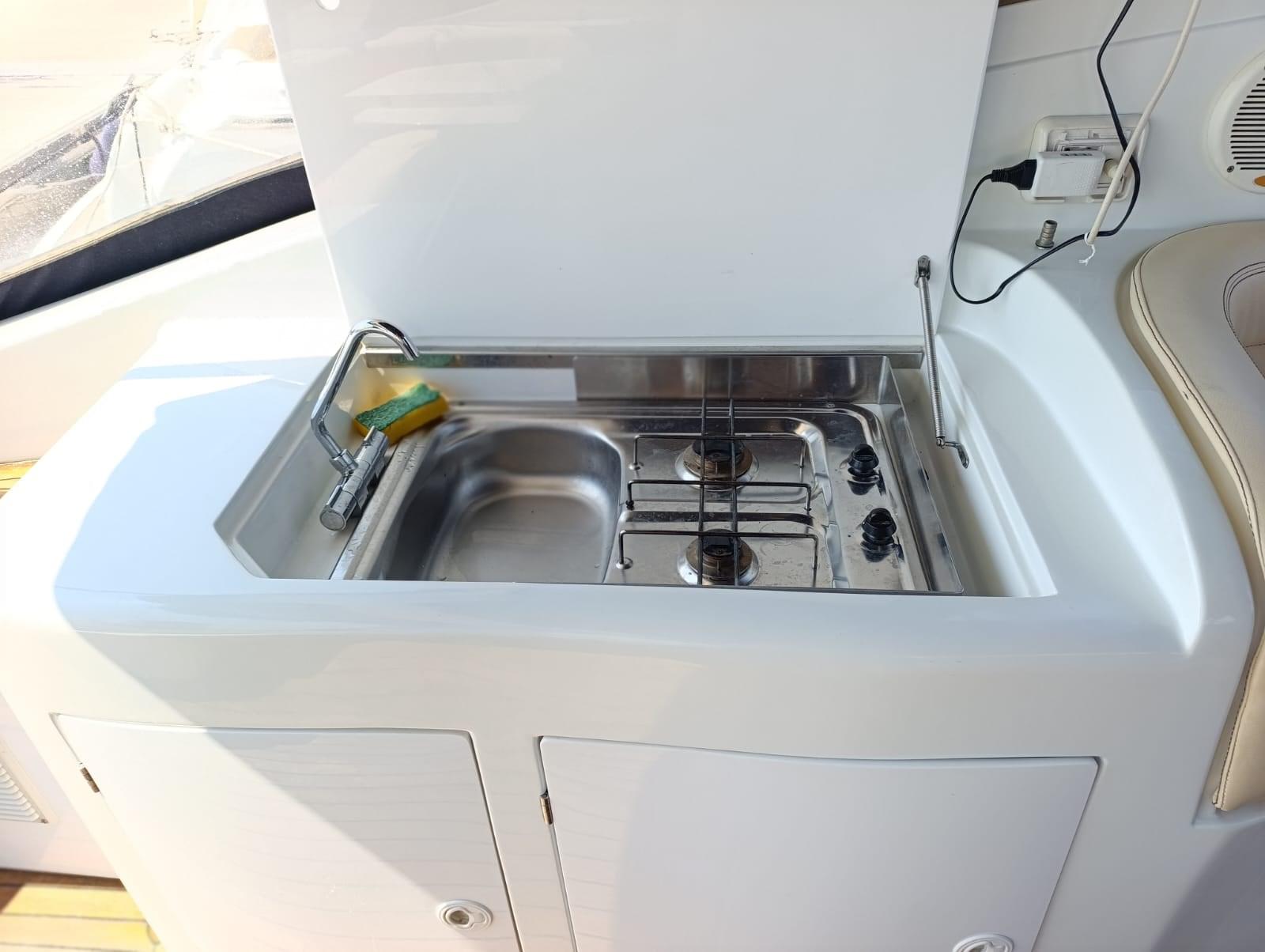 Allarme motore, Autoclave, 5 Batterie (nuove 2025), Doccia esterna, Faro orientabile, 2 Flap idraulici, Indicatori Flaps, Lavandino nel Pozzetto, Luci di cortesia, Luci subacquee, Passerella (idraulica), Piattaforma, Pompa di sentina automatica, Porta ingresso, Presa 220V banchina, Presa acqua banchina, Rollbar, Salpa Ancore Elettrico, Scaletta da bagno, Tavolo pozzetto (abbattibile).