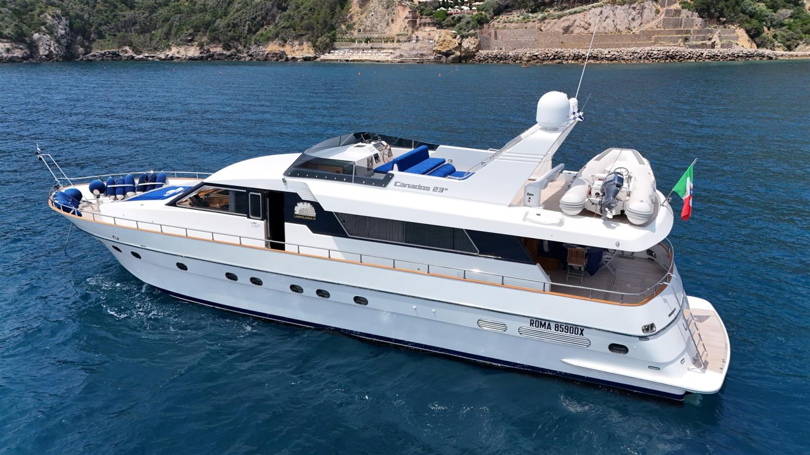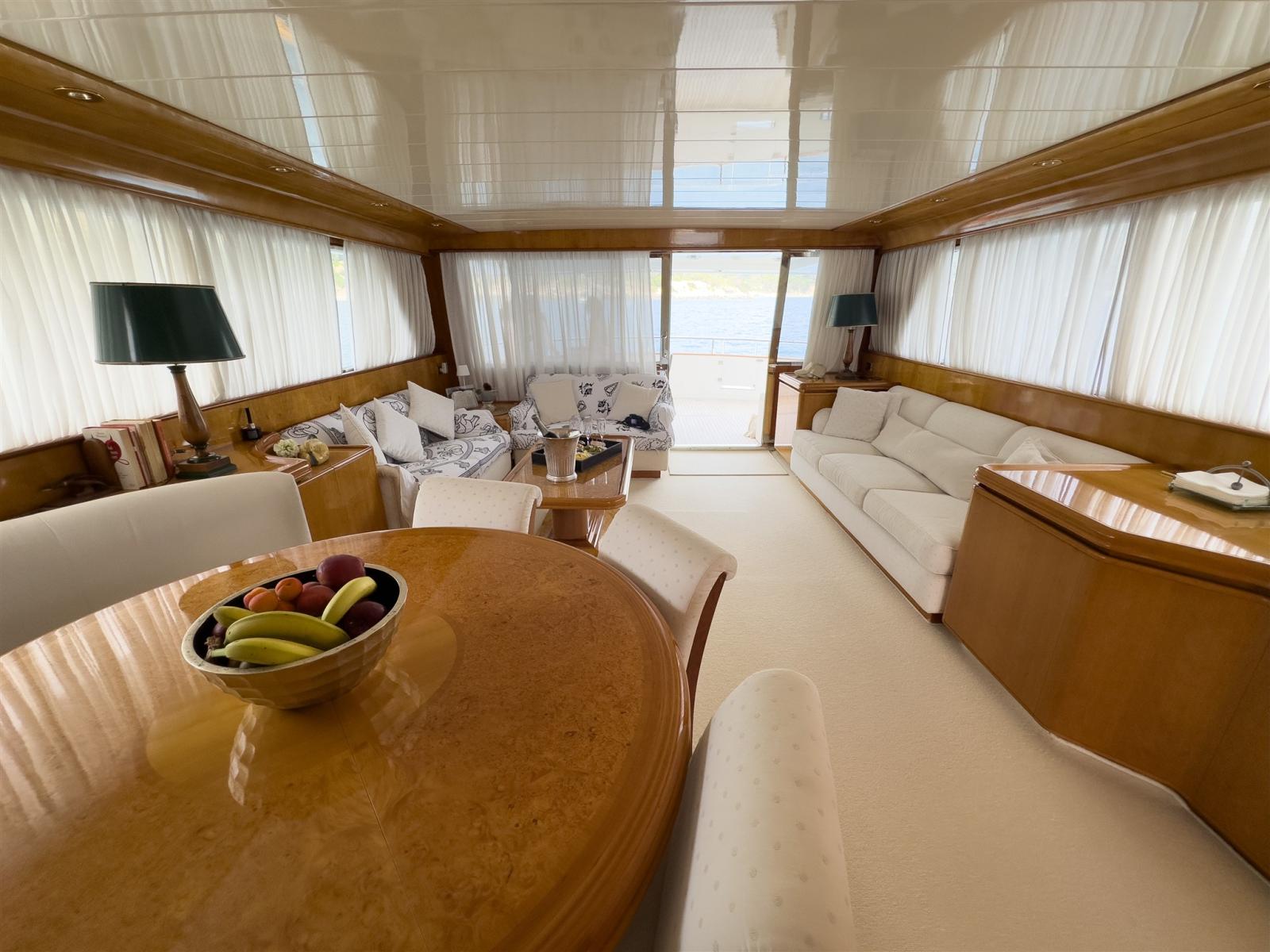 Il Canados è un'imbrcazione di prestigio, elegante. Offre un salone accogliente con ampie vetrate, comodi divani e tavola da pranzo che può accomodare fino ad 8 ospiti.