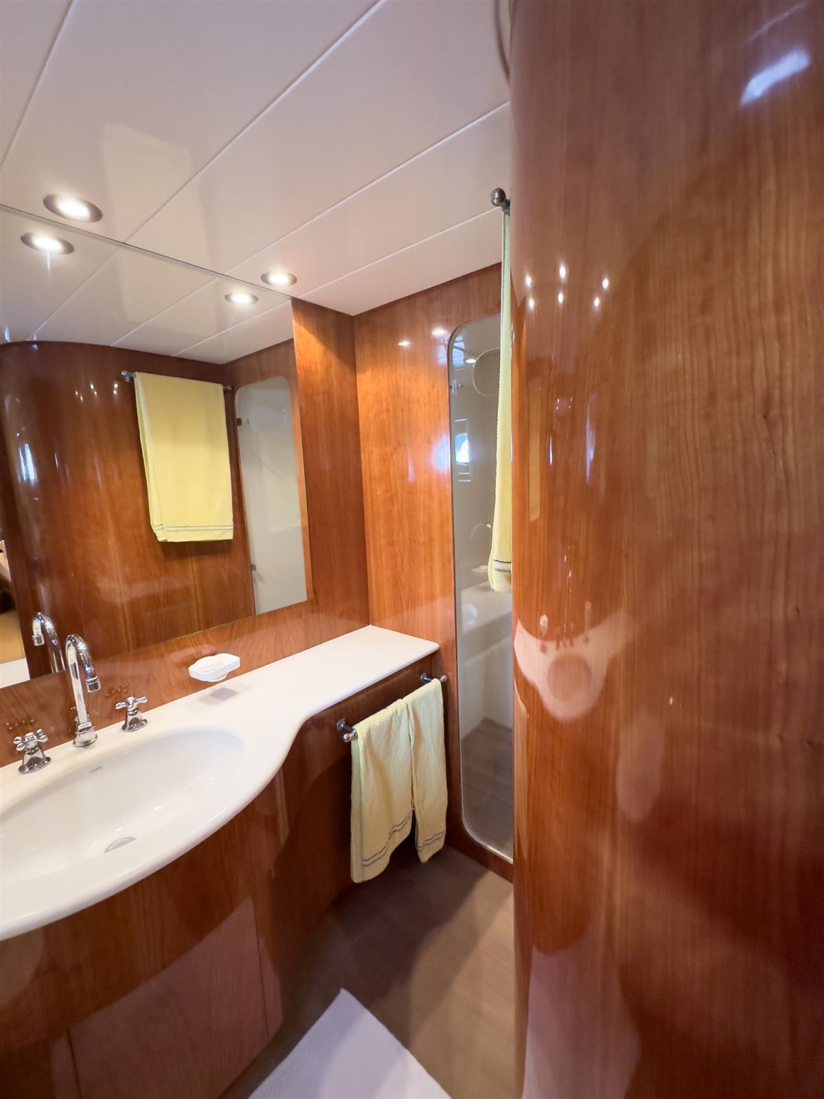 All'interno troviamo 1 cabina armatoriale a tutto baglio, 1 vip di prua e 2 cabine ospiti con letti separati in piano. Ogni cabina dispone del suo bagno privato con box doccia.