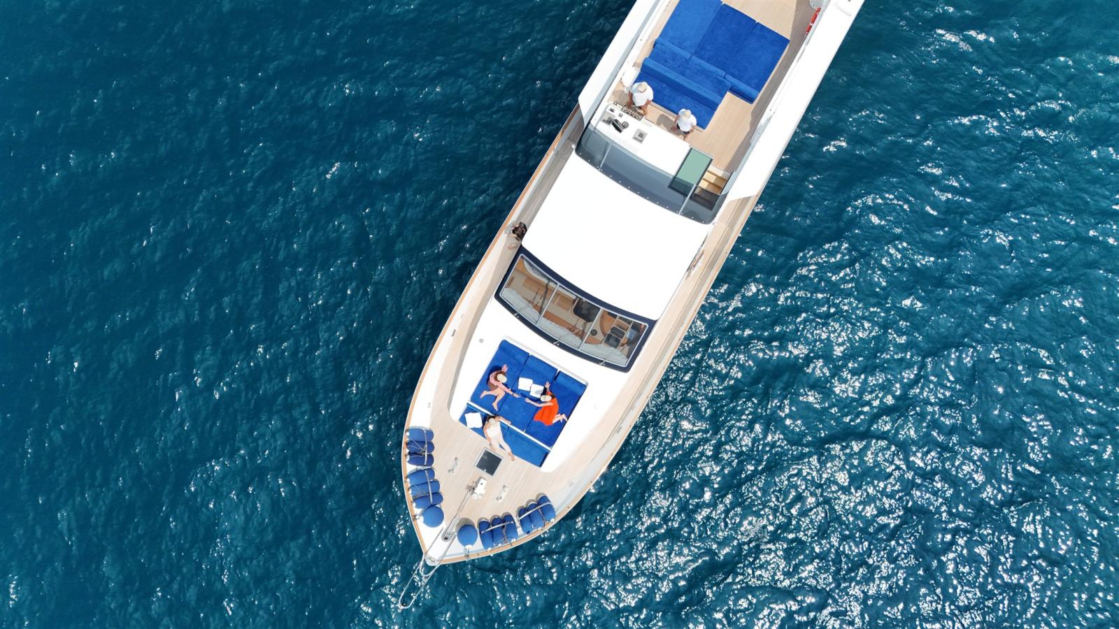 Il ponte superiore offre una splendida area lounge privata con un'ulteriore area prendisole.