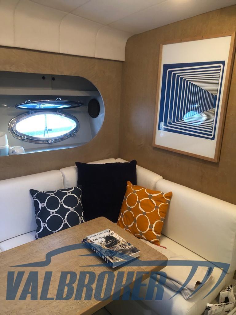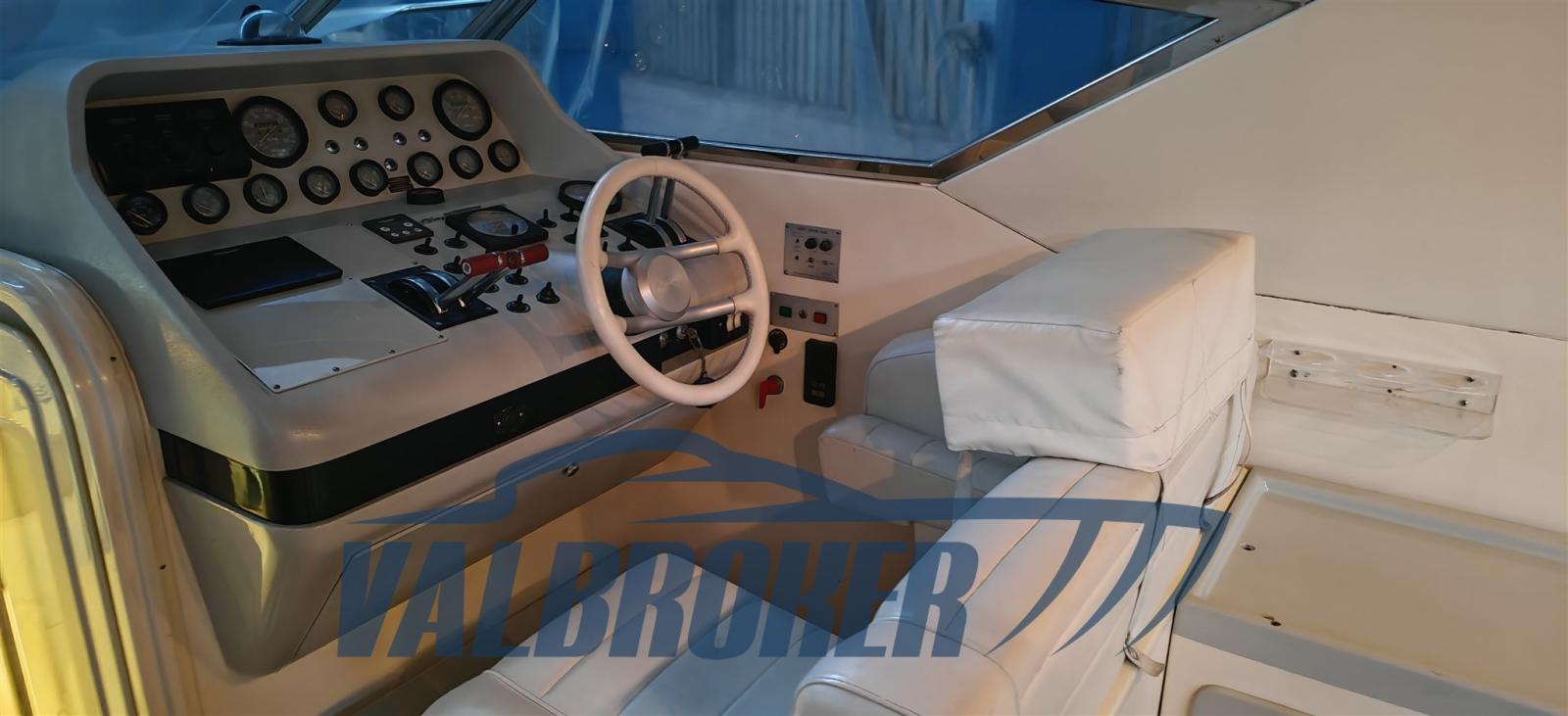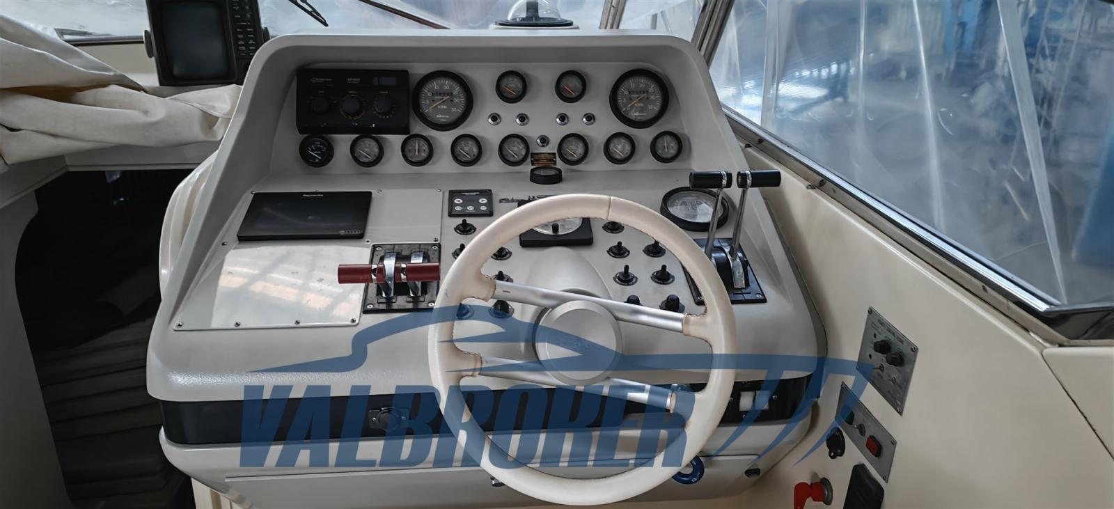 Scafo potente e solido con alte murate a protezione del pozzetto. Cabina a prua e bagno separato, dinette trasformabile. Molti optional installati: aria condizionata, generatore, elica di prua, radar. Imbarcazione in secca per rimessaggio invernale.