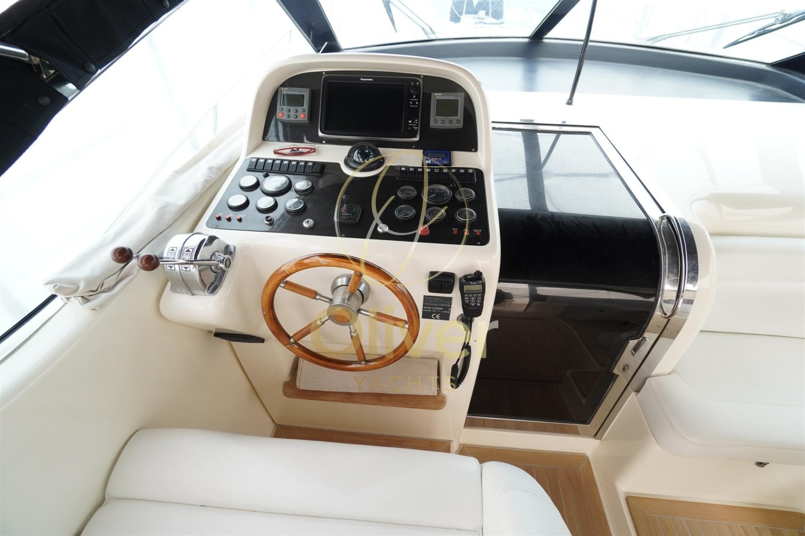 Angolo barra, Antenna radar, Comando motori elettronico, Computer di bordo, Contametri catena, Display (Raymarine st60+), DSC vhf, Log (Raymarine ST6001), Monitor dei consumi, Pilota automatico (Raymarine ST6001), Plotter (Raymarine ST6001), Plotter con antenna GPS (Raymarine ST6001), Quadro comandi, Strumenti di misura per motori.