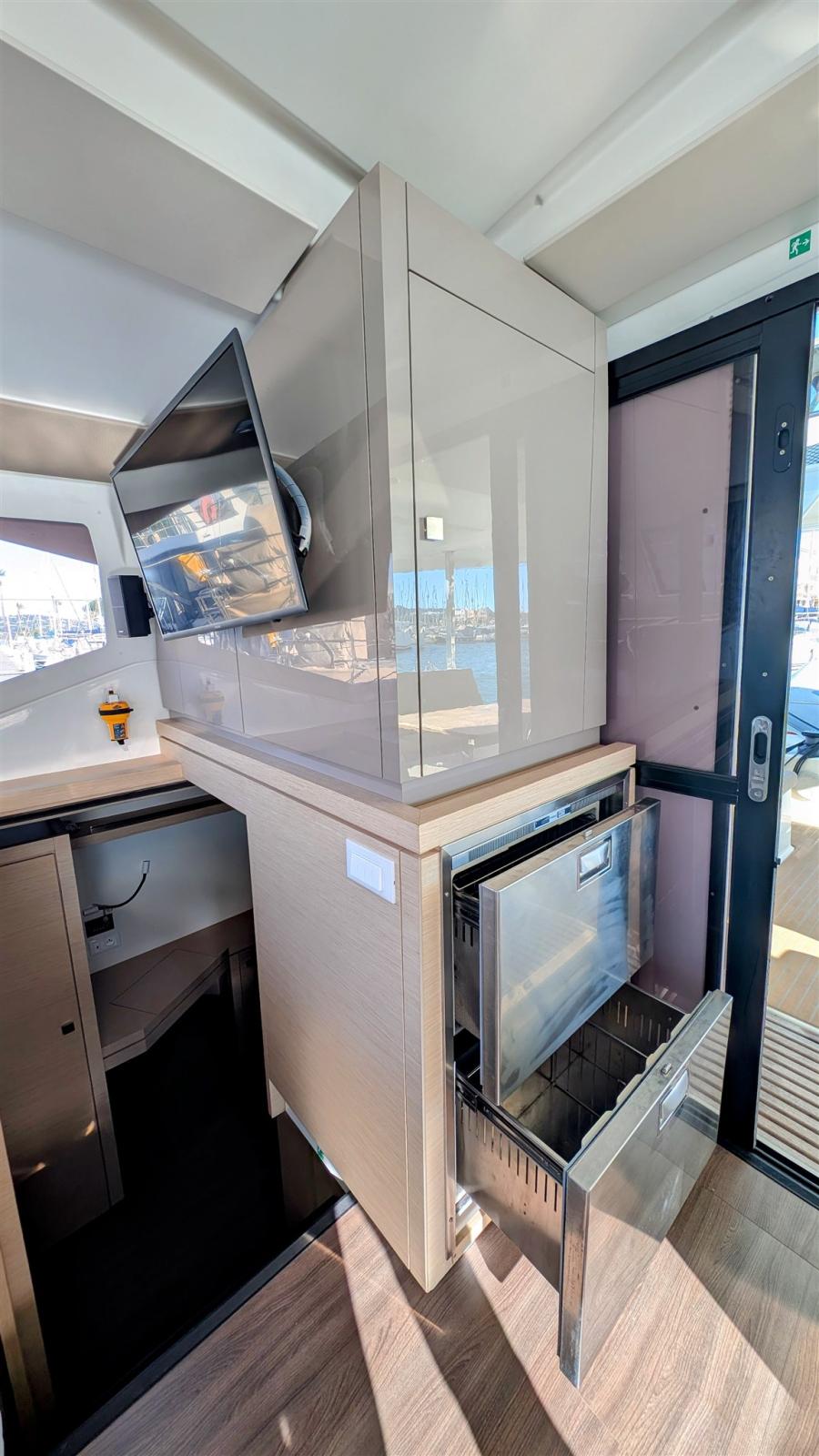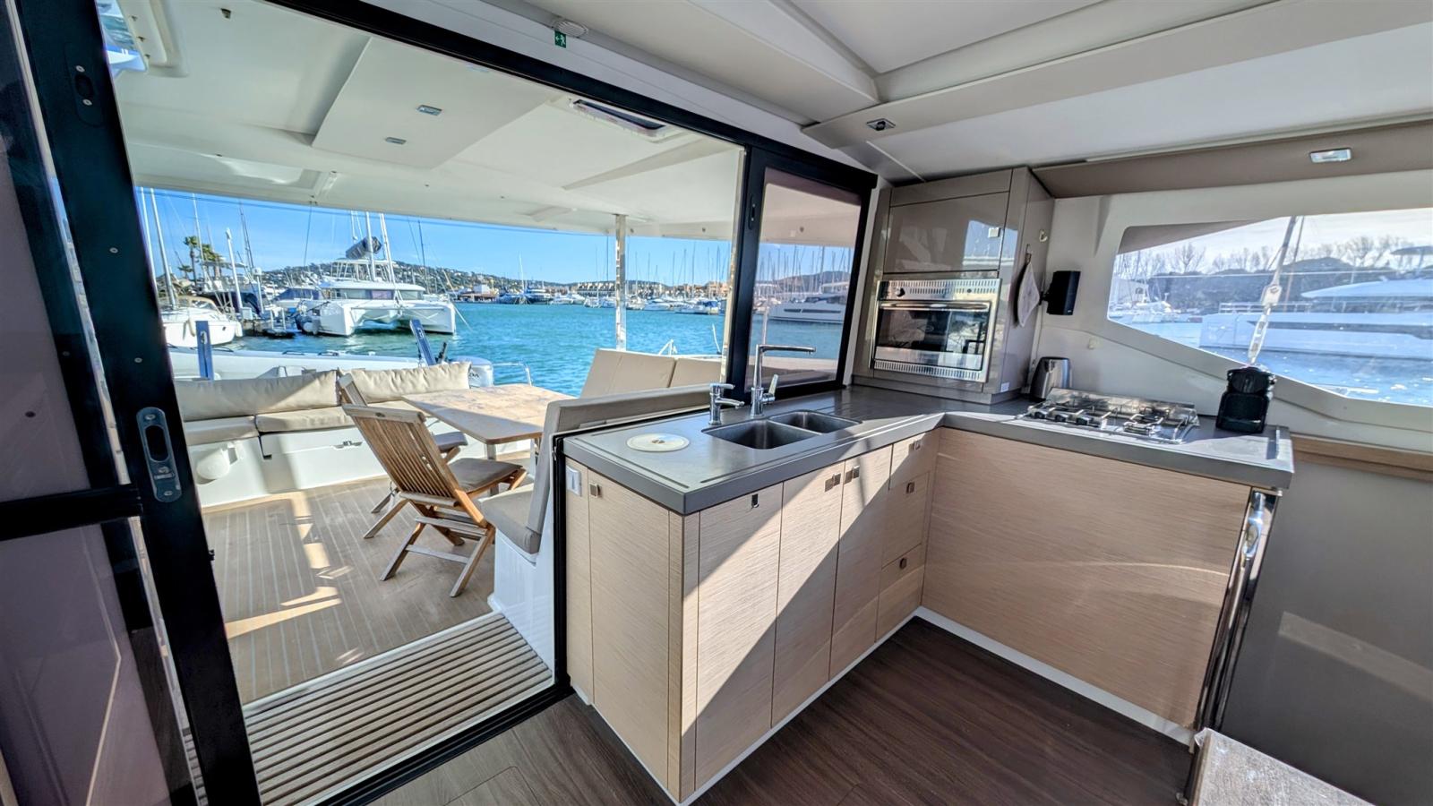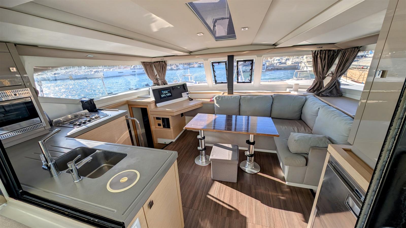Catamarano noto per il suo equilibrio tra prestazioni, comfort e facilità di manovra, questo Lucia 40 nella versione proprietaria offre uno spazio abitativo luminoso, una buona autonomia e un comportamento eccellente in mare.