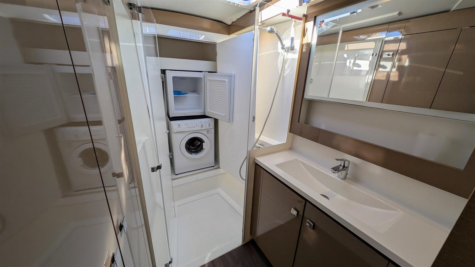 Acqua Calda, Aria condizionata (Cabine master), Boiler (30 l), Dissalatore (Aquabase / 12V / 60l/h), Impianto acque nere, Indicatore del serbatoio del carburante, Indicatore del Serbatoio dell’Acqua, Indicatore della temperatura del motore, Inverter (Victron 2000W), Pavimento interno in legno, Prese interne 12v, Prese interne 220v, Serbatoio Acque Nere, WC marino elettrico (cabine master), 2 WC marino manuale.