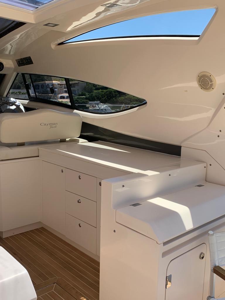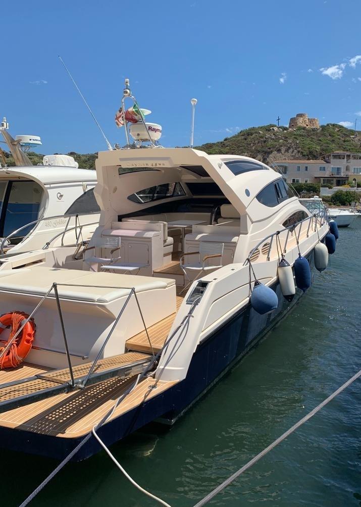 Allarme motore, Allarme sentina, Autoclave, Colorazione speciale (scafo BLU), Doccia esterna, Flap elettrici, Garage per tender, Hard top, Impianto antincendio, Lavandino nel Pozzetto, Luci di cortesia, Passerella, Piattaforma, Pompa di sentina automatica, Pompa di sentina manuale, Pozzetto Teak, Presa 220V banchina, Salpa Ancore Elettrico, Scaletta da bagno, Tavolo pozzetto, Tromba.
