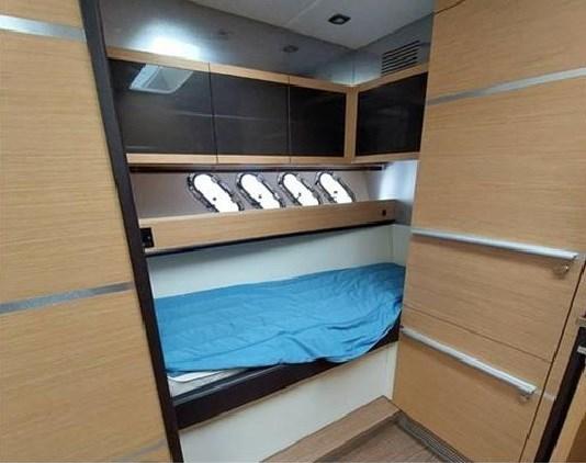 Boiler, Clima reversibile, Dissalatore, Impianto acque nere, Pavimento interno in legno, Prese interne 12v, Prese interne 220v, Serbatoio Acque Nere, Telecamera, WC marino elettrico.