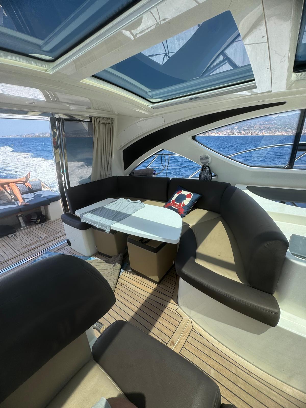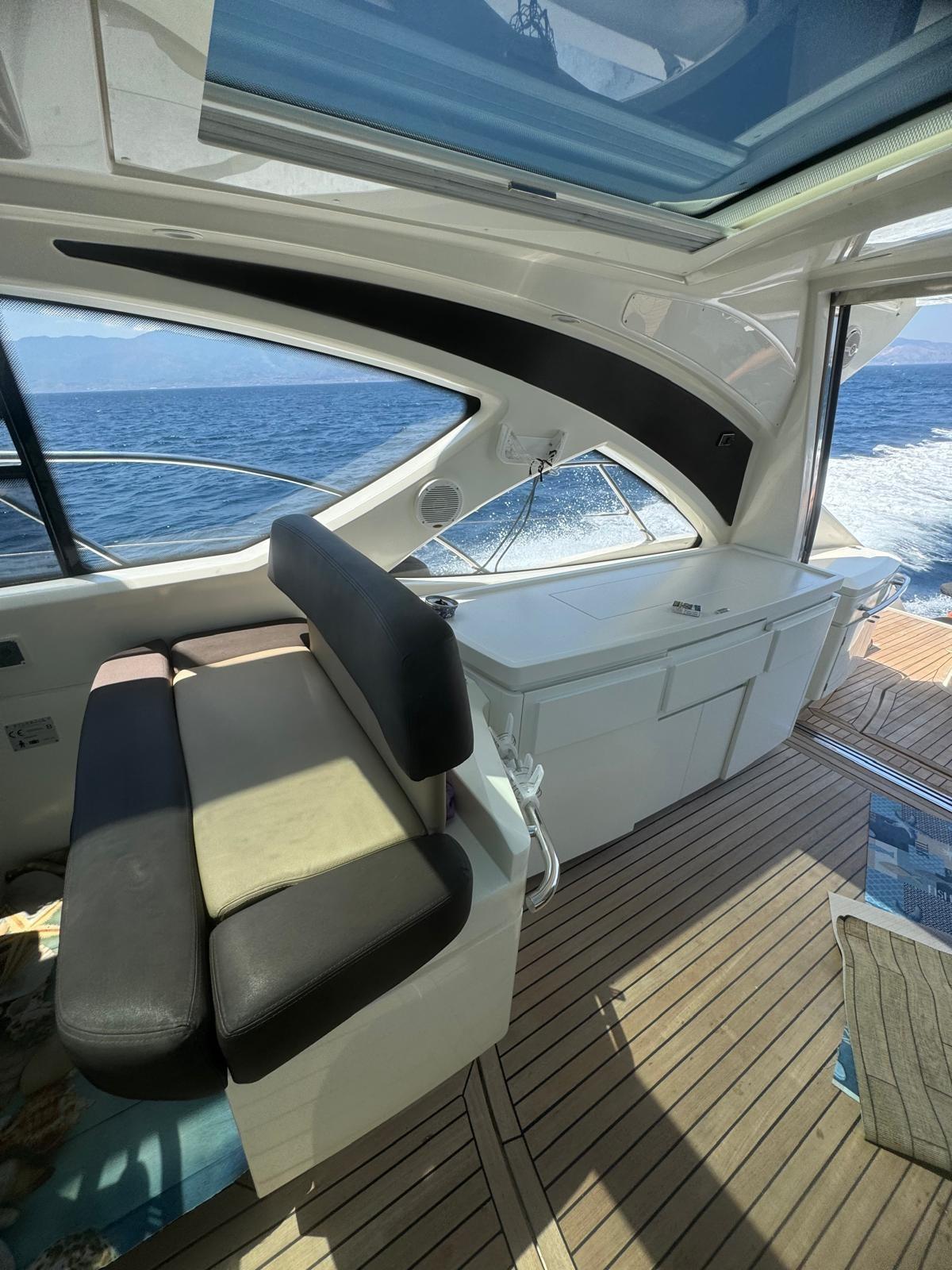 Allarme motore, Allarme sentina, Autoclave, Colorazione speciale (WRAPPING), Doccia esterna, Faro orientabile, Flap elettrici, Hard top, Impianto antincendio, Indicatori Flaps, Lavandino nel Pozzetto, Luci di cortesia, Passerella, Piattaforma (ELETTROIDRAULICA), Pompa di sentina automatica, Pompa di sentina manuale, Porta ingresso, Pozzetto Teak, Presa 220V banchina, Raddrizzatore, Rollbar, Salpa Ancore Elettrico, Scaletta da bagno, Tavolo pozzetto, Tavolo Salone Abbattibile, Tientibene con cancelletti, Tromba.