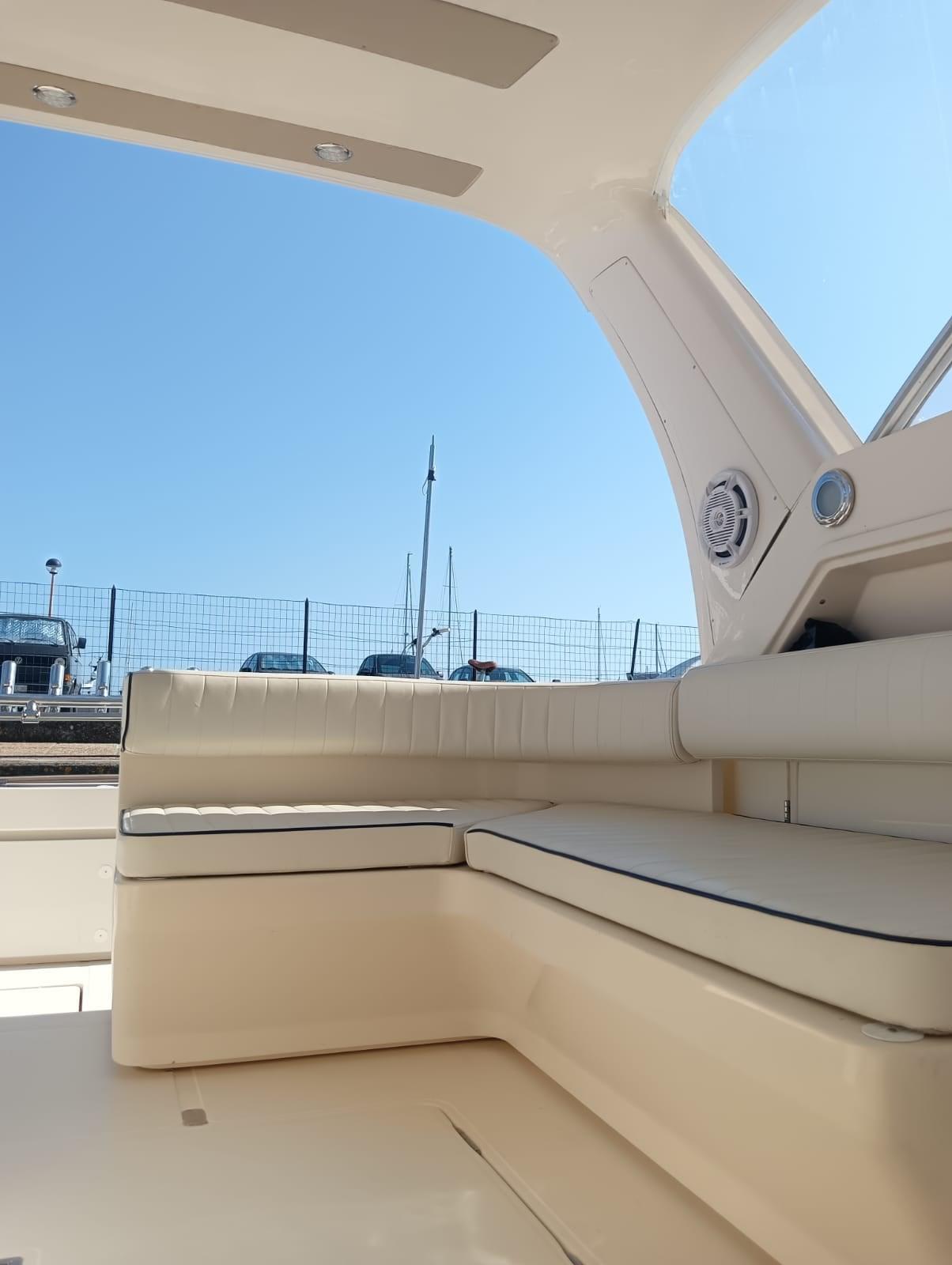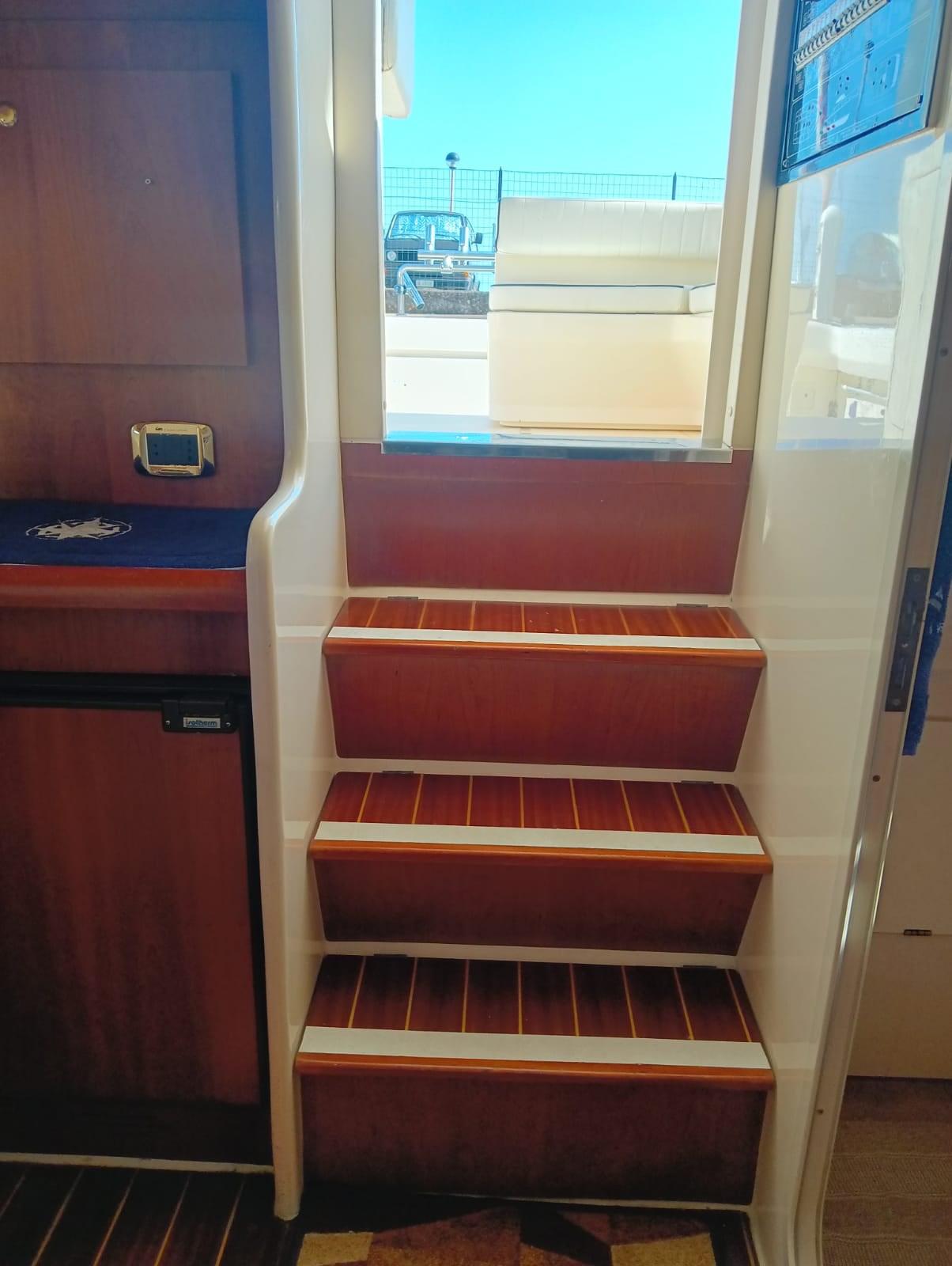 Allarme motore, Allarme sentina, Apertura Vano Motore Elettrica, Autoclave, Colorazione speciale (SCAFO BLU), Doccia esterna, Flap elettrici, Luci di cortesia, Piattaforma, Pompa di sentina automatica, Pompa di sentina manuale, Presa 220V banchina, Salpa Ancore Elettrico, Scaletta da bagno, Tromba, T-Top.