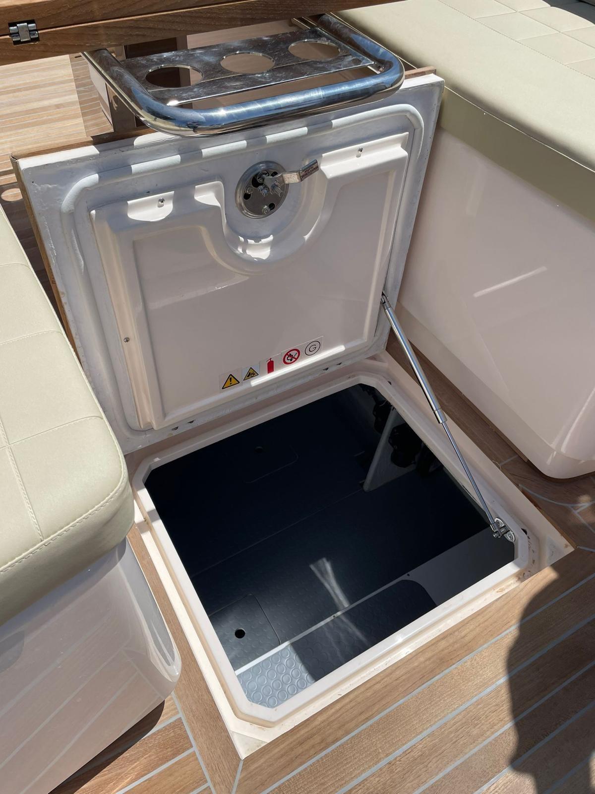 Package Confort (Hard Top in vetroresina con luci led + Frigorifero e Barbecue lt. 42 mobile pozzetto; Presa d'acqua di banchina con riduzione di pressione; Tavolo telescopico in LLA con piano in legno nel pozzetto + Aria condizionata versione 1 Compact Monoblocco 7000 Btu + Generatore 5 kw
