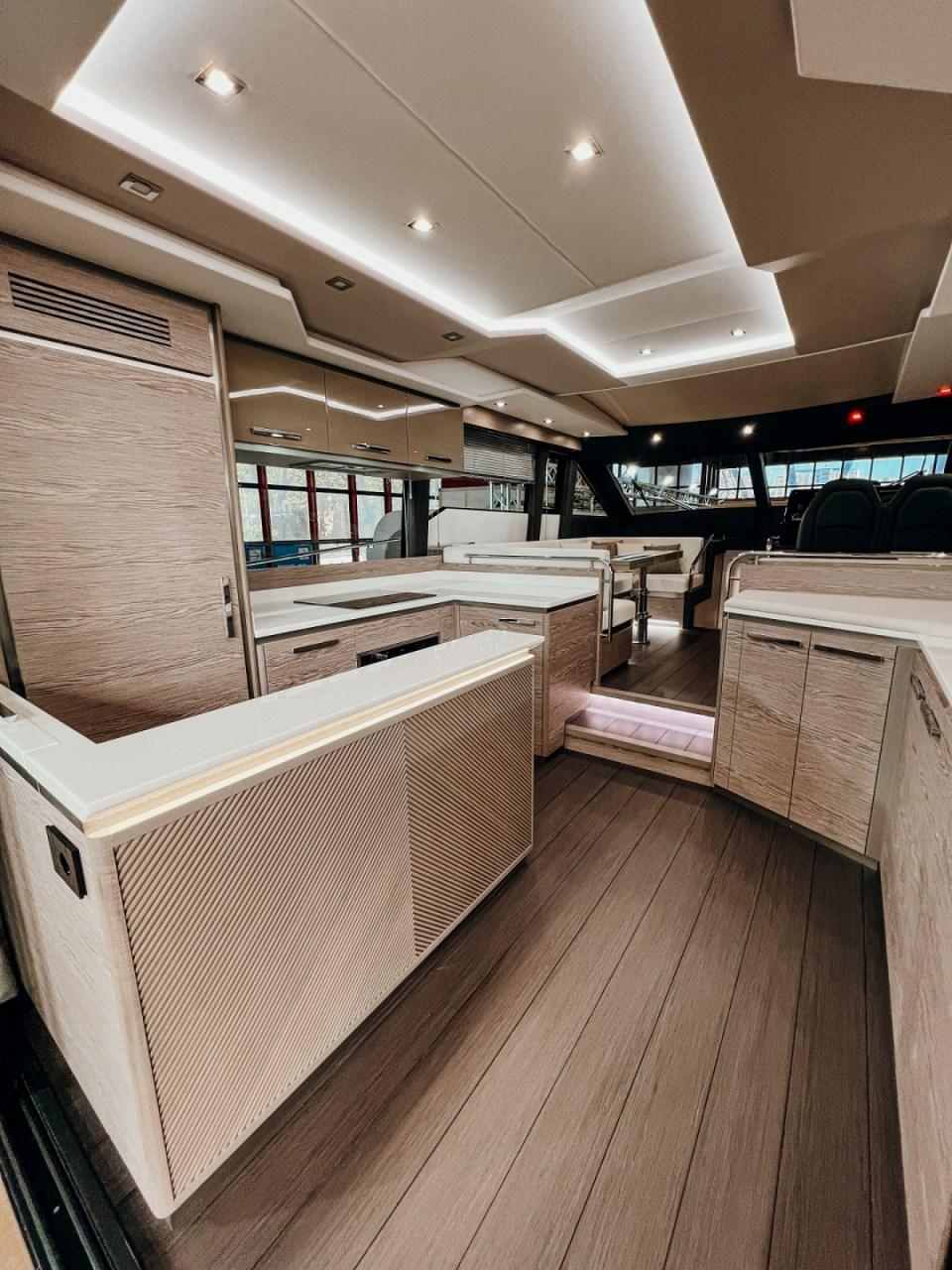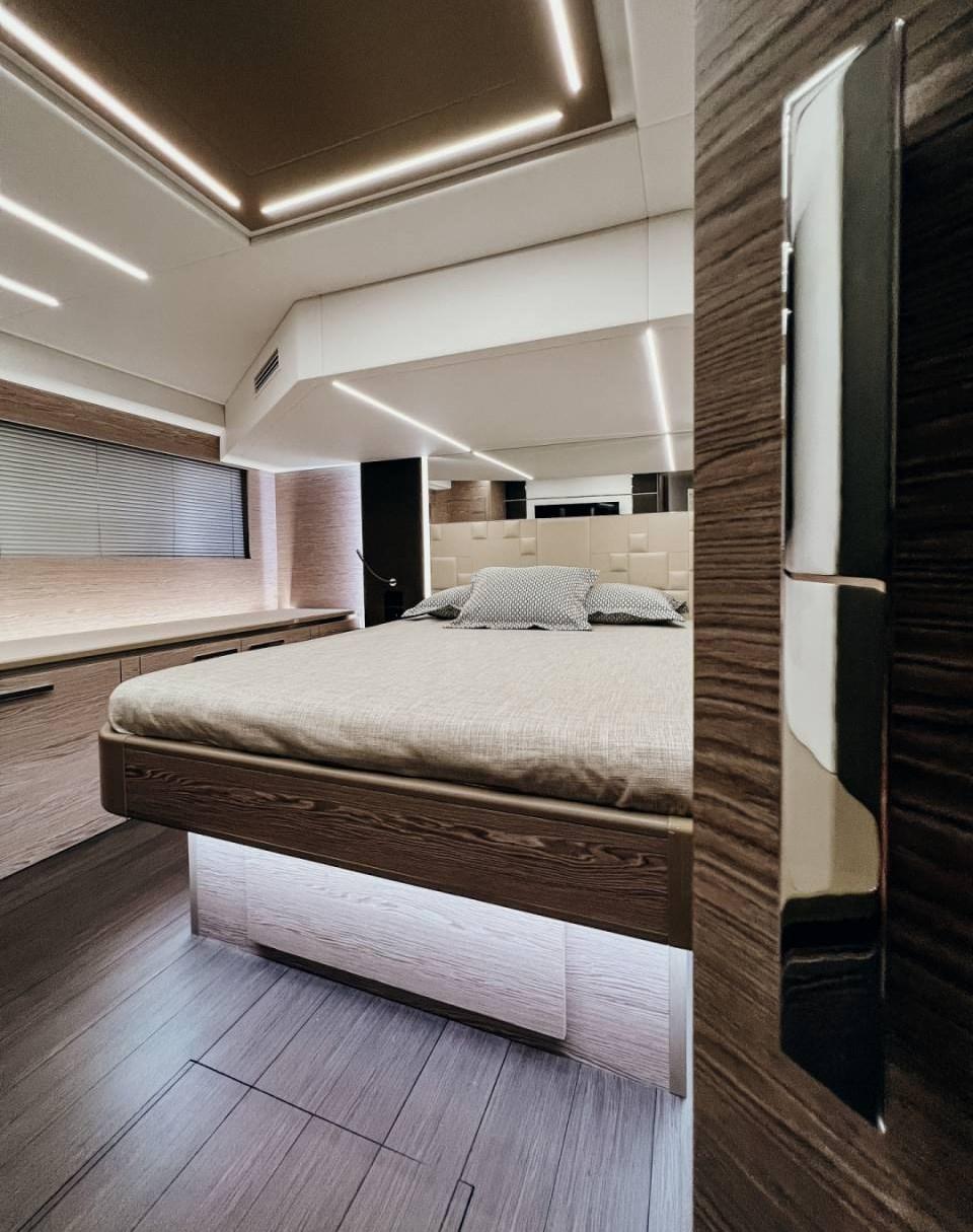 CORRIDOIO A PRUA "WALK AROUND" CON TAVOLINO, SALOTTO E PRENDISOLE