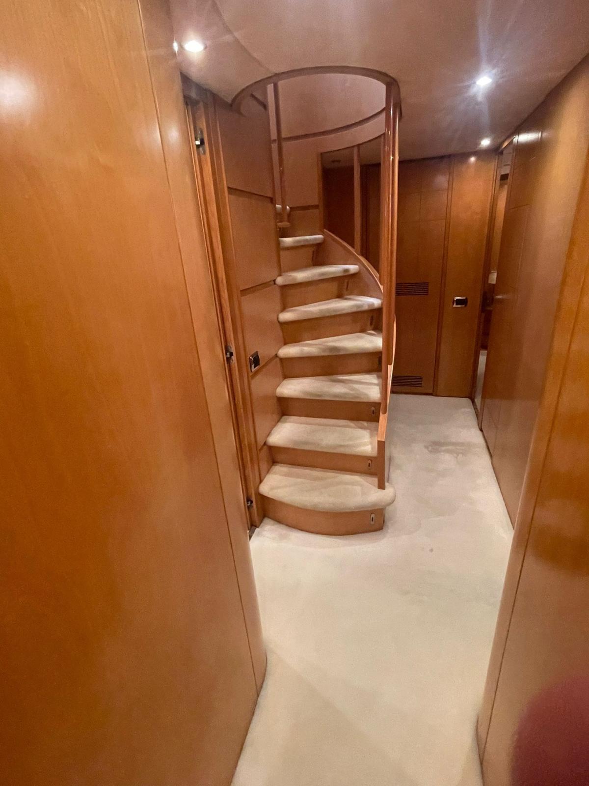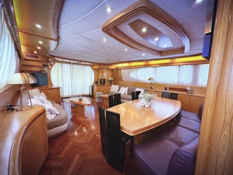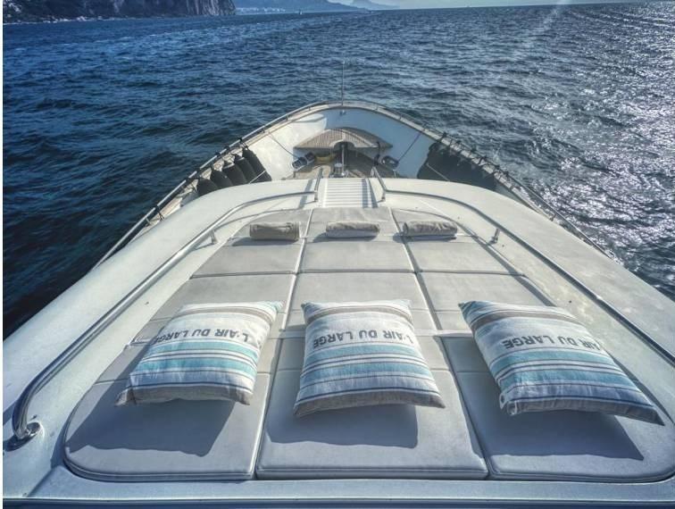Allarme motore, Allarme sentina, Autoclave, Camminamenti laterali in teak, Doccia esterna, Doppia timoneria, Faro orientabile, Flap idraulici, Gruette, Impianto antincendio, Lavaggio catena, Lavandino nel Pozzetto, Luci di cortesia, Passerella, Piattaforma, Pompa di sentina automatica, Pompa di sentina manuale, Porta ingresso, Porta laterale, Pozzetto Teak, Presa 220V banchina, Raddrizzatore, Ripetitore strumentazione, Rollbar, Salpa Ancore Elettrico, Scaletta da bagno, Selle per Tender, Tavolo pozzetto, Tientibene con cancelletti, Tromba.