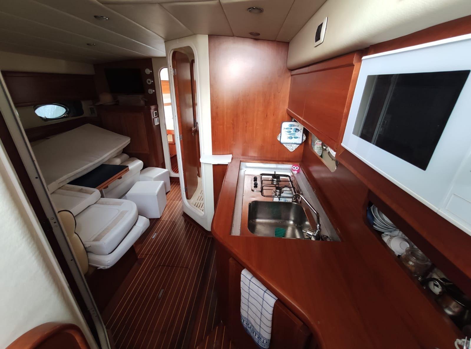Boiler, Impianto acque nere, Pavimento interno in legno, Prese interne 12v, Prese interne 220v, WC marino elettrico.