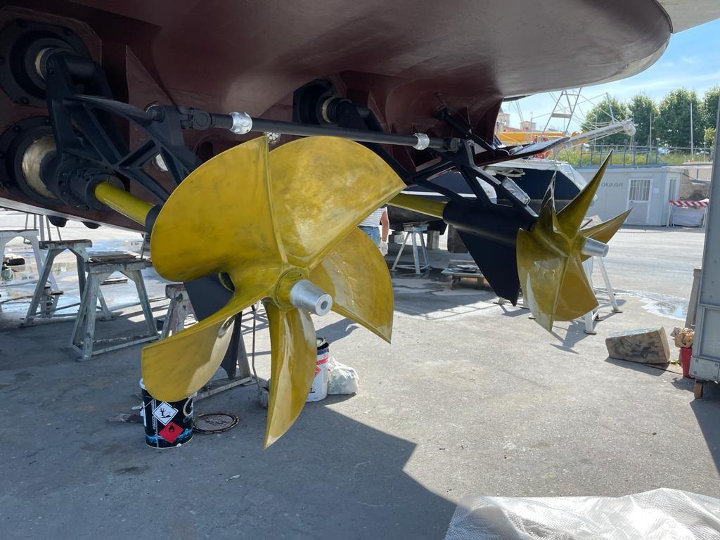 LUNGO ELENCO LAVORI TRA CUI...NUOVI MOTORI, INVERTITORI, ELICHE, 1 GENERATORE, IMPIANTI ELETTRO/IDRAULICO, POMPE ACQUA MARE, BLOWERS, FLAPS, DISSALATORE, ARIA CONDIZIONATA, AUTOCLAVI, SECONDA STAZIONE DI COMANDO A POPPA, ETC.