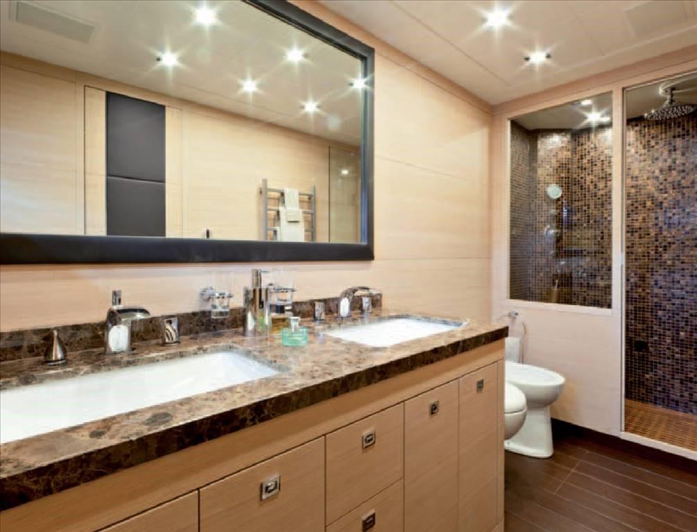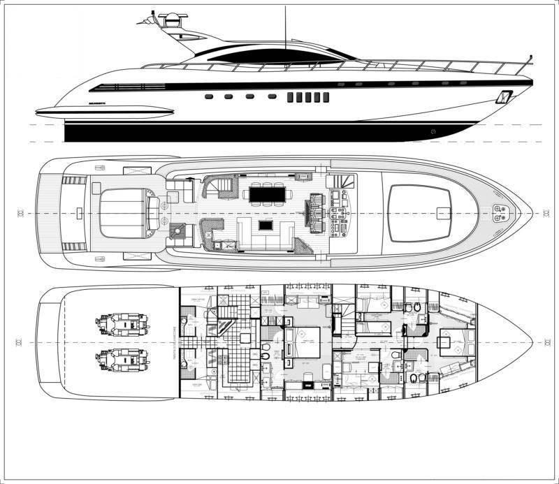 Allarme fumo/gas, Allarme motore, Allarme sentina, Autoclave, Camminamenti laterali in teak, Doccia esterna, Faro orientabile, Flap elettrici, Garage per tender, Hard top (ELETTRICO), Impianto antincendio, Indicatori Flaps, Lavaggio catena, Luci di cortesia, Luci subacquee, Passerella (IDRAULICA), Piattaforma, Pompa di sentina automatica, Pompa di sentina manuale, Porta ingresso, Porta laterale, Pozzetto Teak, Presa 220V banchina, Presa acqua banchina, Rollbar, Salpa Ancore Idraulico, Scaletta da bagno, Stabilizzatori (SMART GYRO), Tavolo pozzetto, Tromba, Winch tonneggio di poppa.