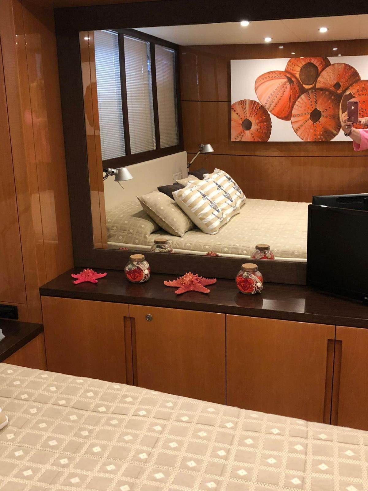 Allarme motore, Allarme sentina, Alternatore, Autoclave, Cavo corrente di banchina, Colorazione speciale, Corrimano, Doccia esterna, Flap idraulici, Garage per tender, Hard top, Impianto antincendio, Indicatori Flaps, Lavandino nel Pozzetto, Luci di cortesia, Luci subacquee, Passerella, Piattaforma, Pompa di sentina automatica, Pompa di sentina manuale, Pozzetto Teak, Presa 220V banchina, Salpa Ancore Elettrico, Scaletta da bagno, Tavolo pozzetto, Tromba, Winch tonneggio di poppa.