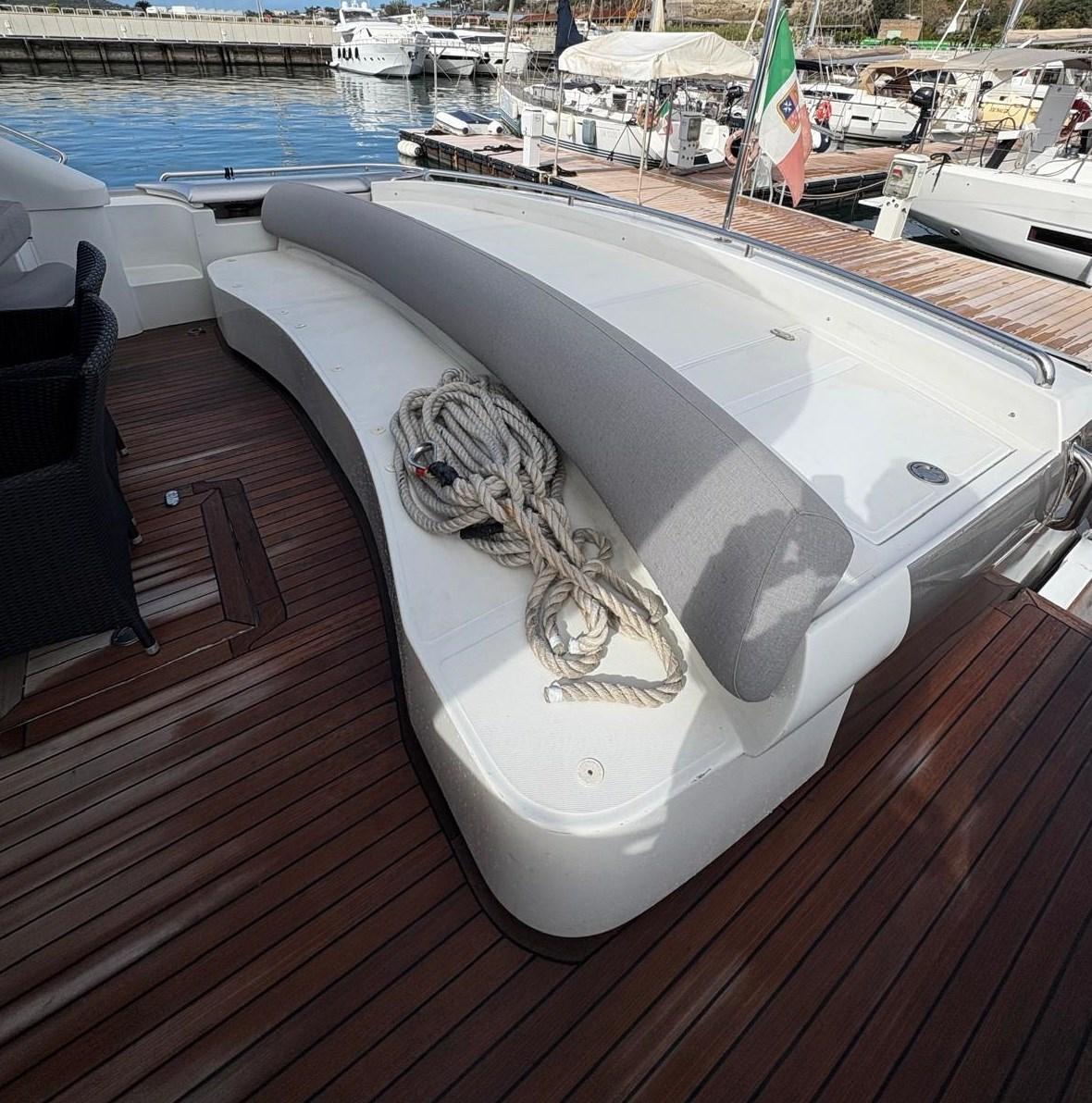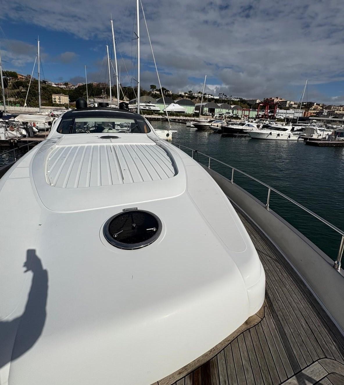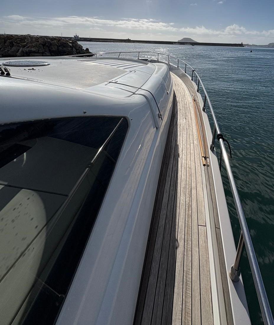 Allarme motore, Allarme sentina, Alternatore, Autoclave, Camminamenti laterali in teak, Cavo corrente di banchina, Colorazione speciale (SCAFO ARGENTO METALLIZZATO E TUGA BIANCA), Corrimano, Doccia esterna, Flap elettrici, Hard top, Impianto antincendio, Indicatori Flaps, Lavandino nel Pozzetto, Luci di cortesia, Passerella, Piattaforma, Pompa di sentina automatica, Pompa di sentina manuale, Ponte in teak, Porta ingresso, Porta laterale, Pozzetto Teak, Presa 220V banchina, Salpa Ancore Elettrico, Scaletta da bagno, Tavolo pozzetto, Tientibene con cancelletti, Tromba.