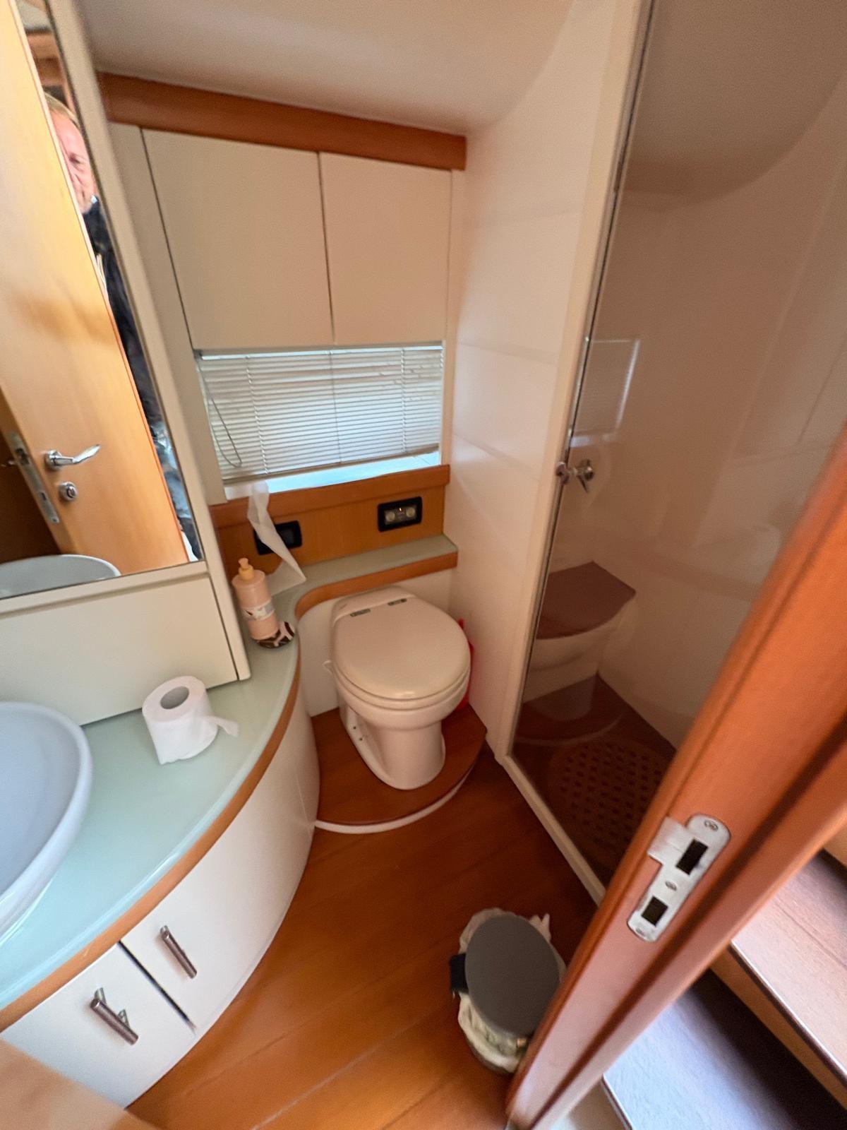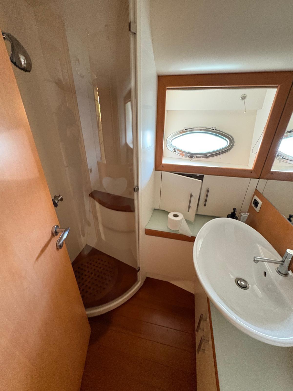 Acqua Calda, BBQ/ Grill, Boiler, Clima reversibile, Controllo Domotica (NAVIOP), Dissalatore, Impianto acque nere, Pavimento interno in legno, Prese interne 12v, Prese interne 220v, Serbatoio Acque Nere, WC marino elettrico.