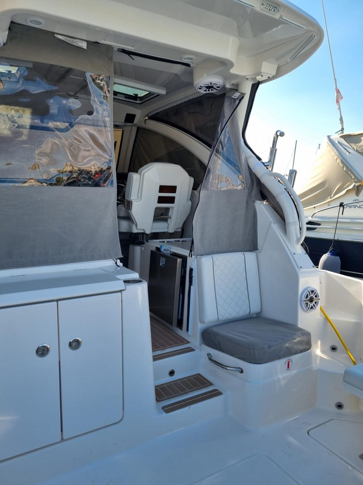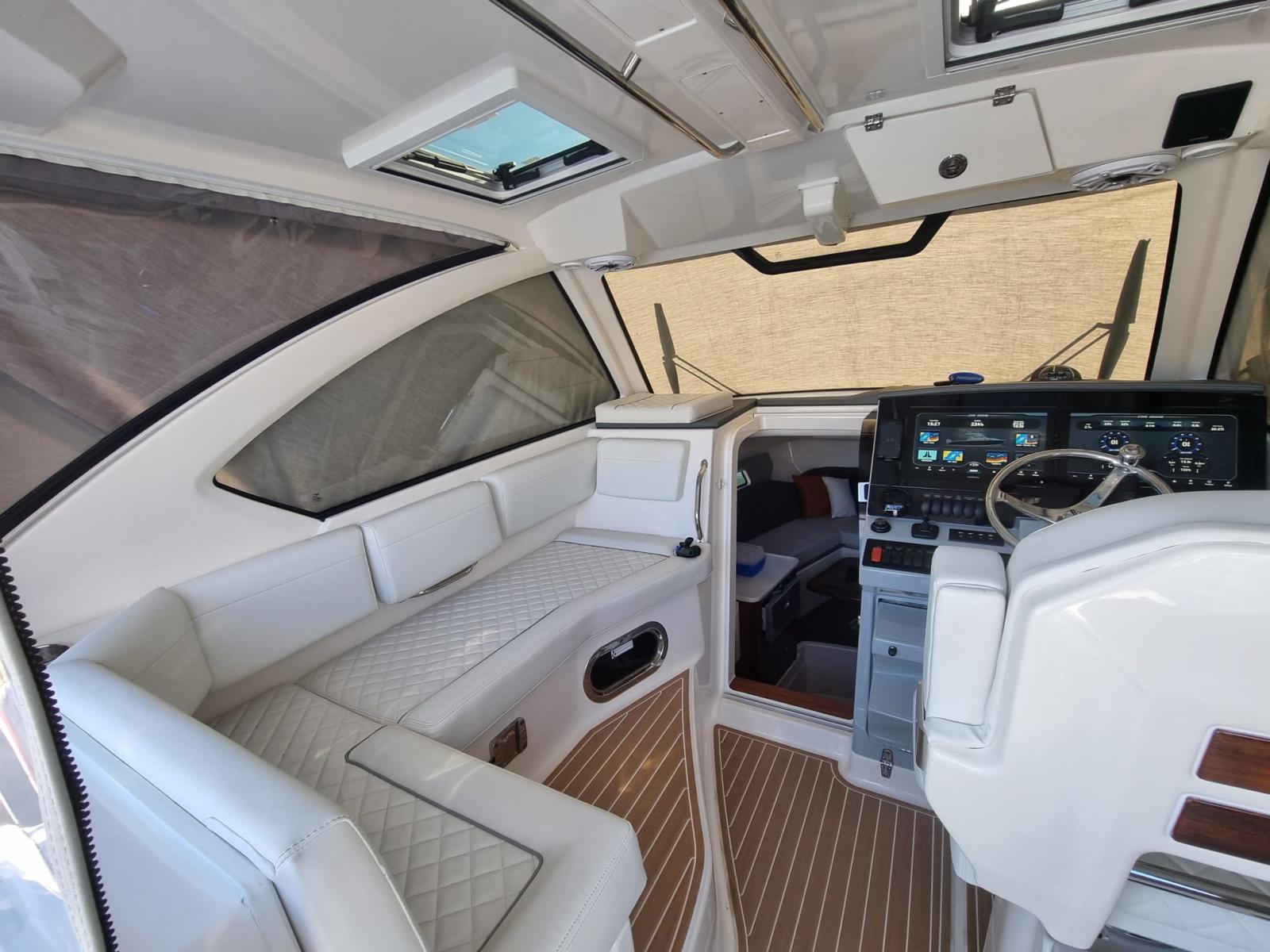 Angolo barra, Comando motori elettronico, Contametri catena, Pilota automatico (YAMAHA), Plotter con antenna GPS (DOPPIO GARMIN 16”), Radio VHF (GARMIN).