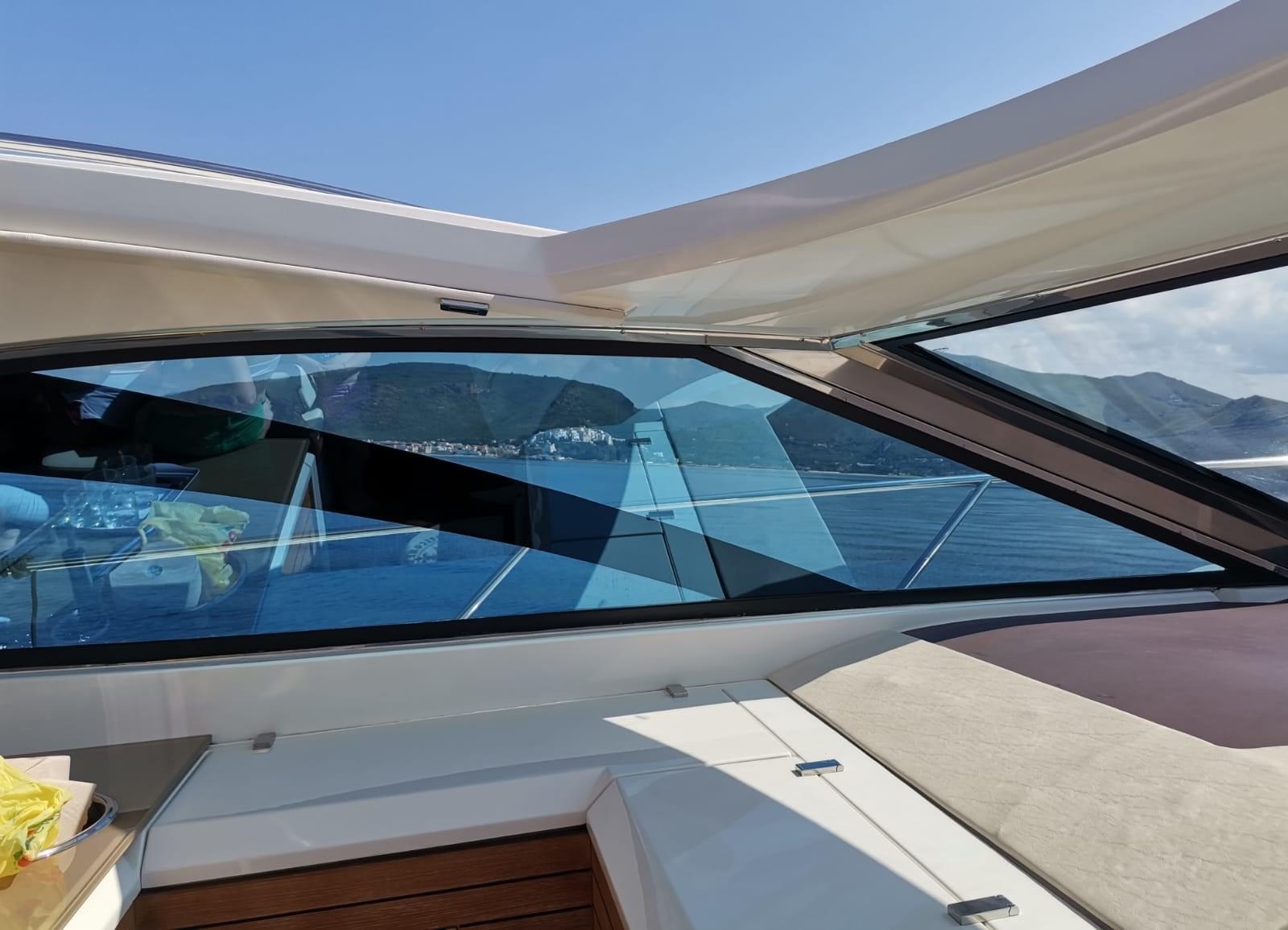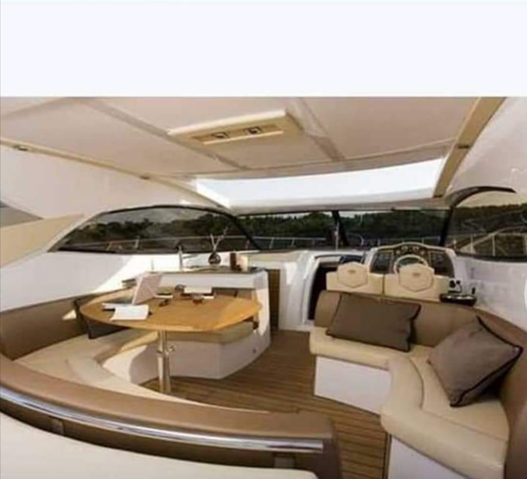Allarme motore, Allarme sentina, Ancora (in acciaio INOX a specchio da 30 kg), Autoclave, Colorazione speciale (SCAFO PEARL BEIGE METALLIZZATO), Doccia esterna, Faro orientabile, Flap idraulici, Garage per tender, Hard top, Impianto antincendio, Lavandino nel Pozzetto, Luci di cortesia, Luci subacquee, Passerella (IDRAULICA), Piattaforma, Pompa di sentina automatica, Pompa di sentina manuale, Pozzetto Teak, Presa 220V banchina, Raddrizzatore, Salpa Ancore Elettrico, Scaletta da bagno, Tavolo pozzetto, Tientibene con cancelletti, Tromba, Winch tonneggio di poppa.