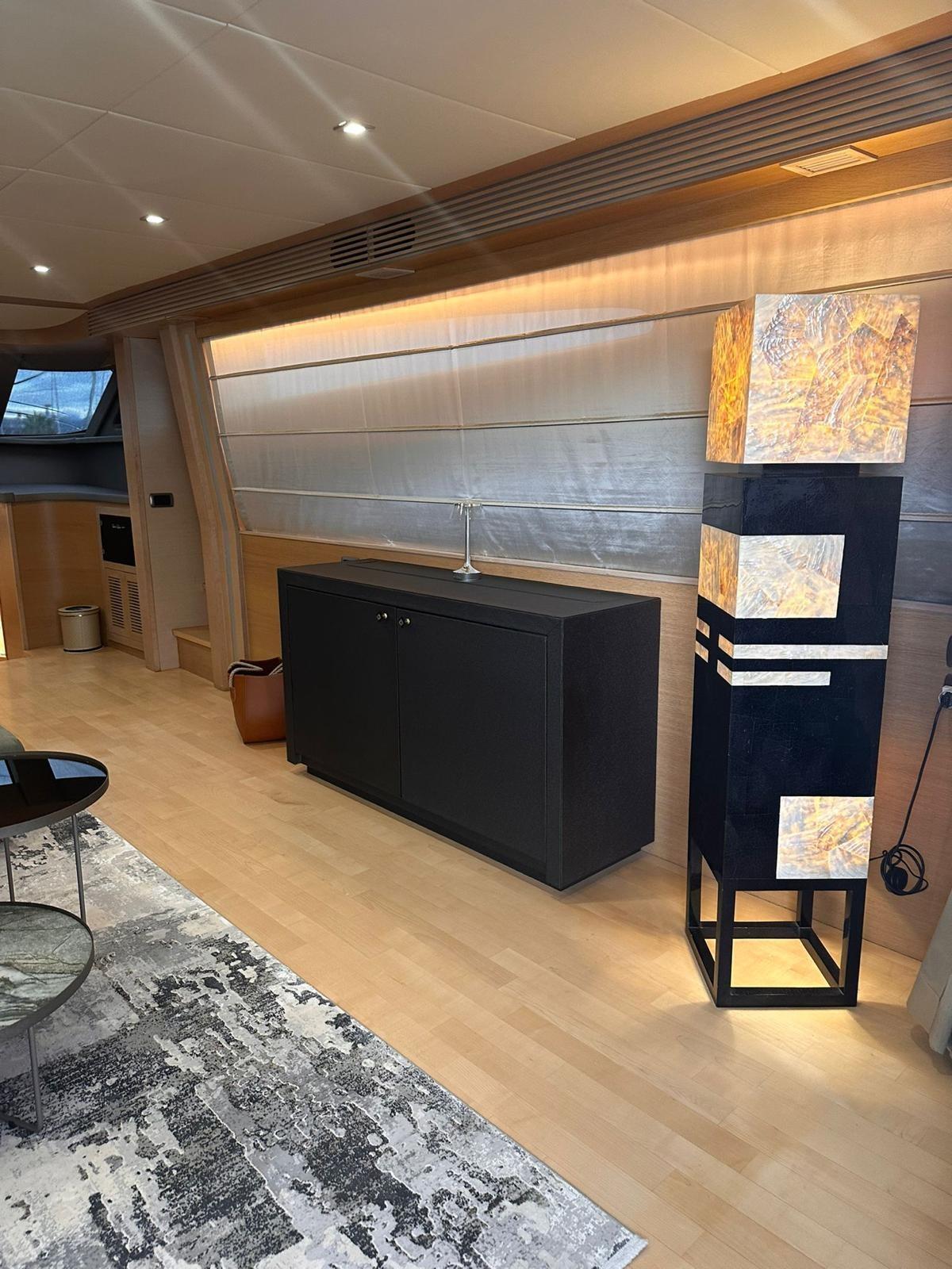 Acqua Calda, Boiler, Clima reversibile, Controllo Domotica, Dissalatore, Impianto acque nere, Indicatore del serbatoio del carburante, Indicatore del Serbatoio dell’Acqua, Pavimento interno in legno, Prese interne 12v, Prese interne 220v, Serbatoio Acque Nere, Telecamera, WC marino elettrico.