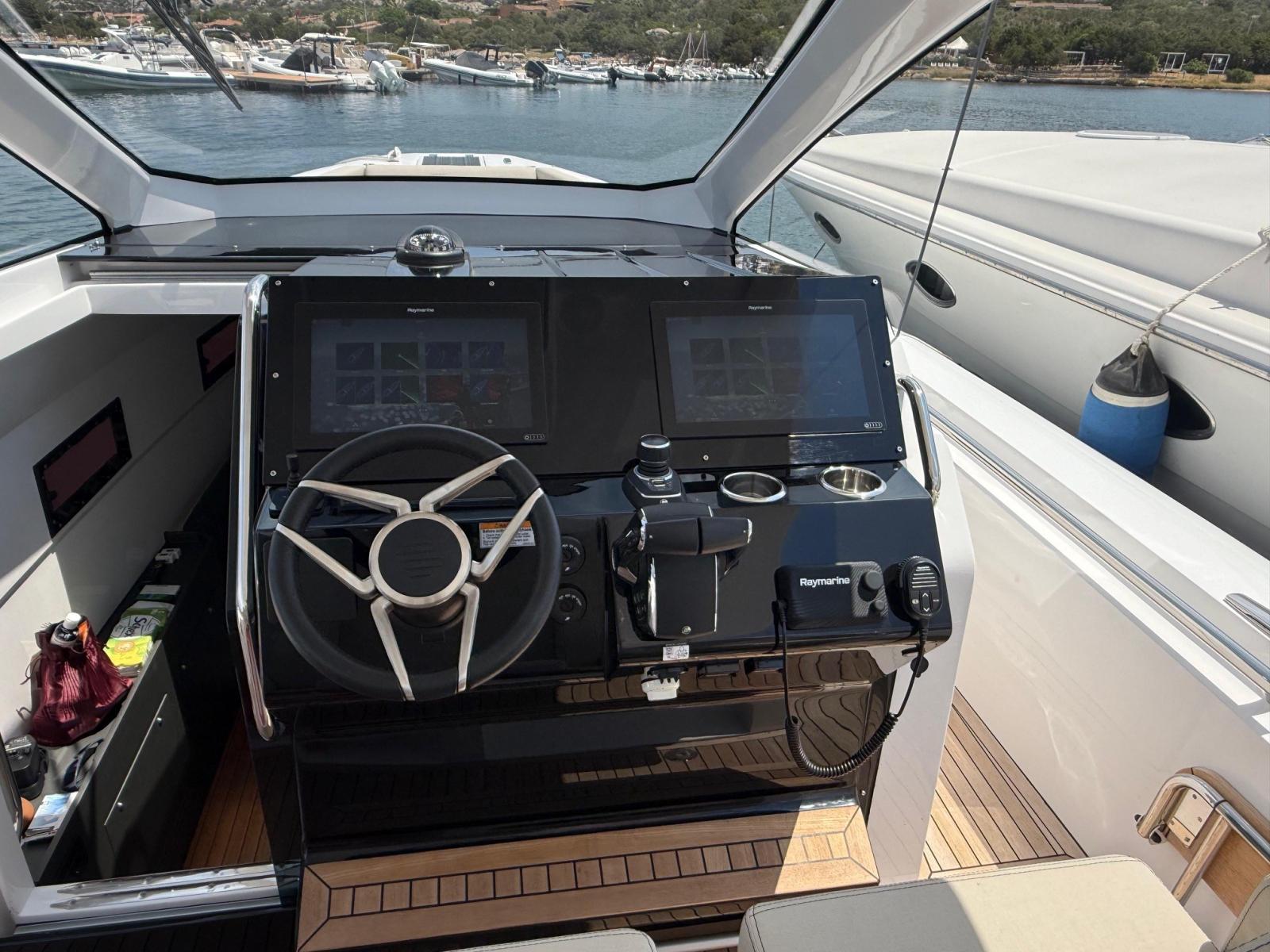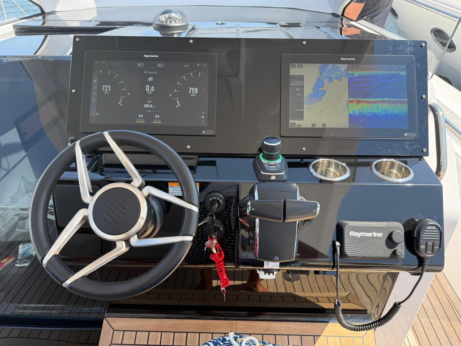 Angolo barra, Computer di bordo, Contametri catena, Display, Joystick, Plotter con antenna GPS (RAYMARINE n. 2 monitor da 16"), Sedile Copilota.