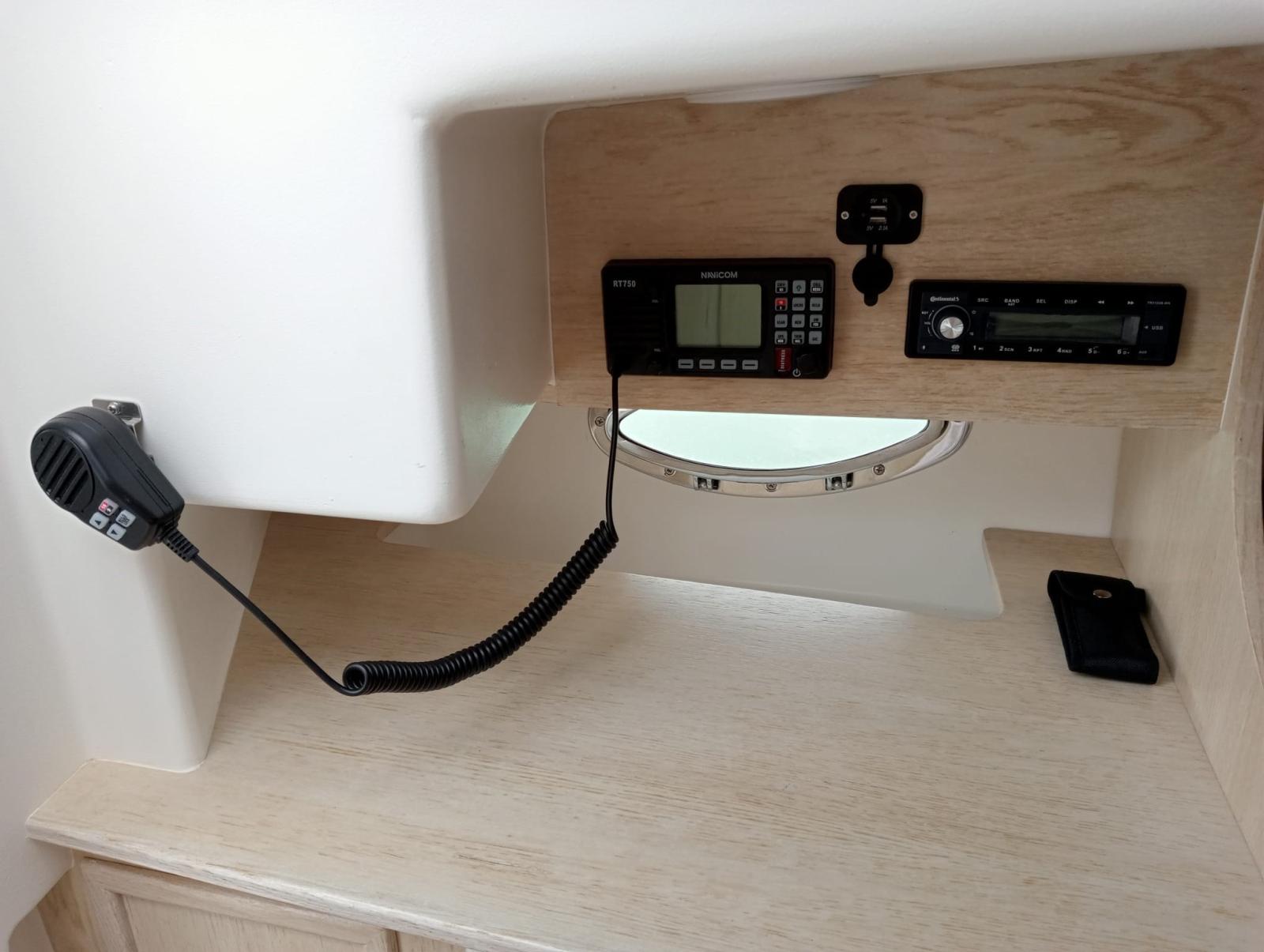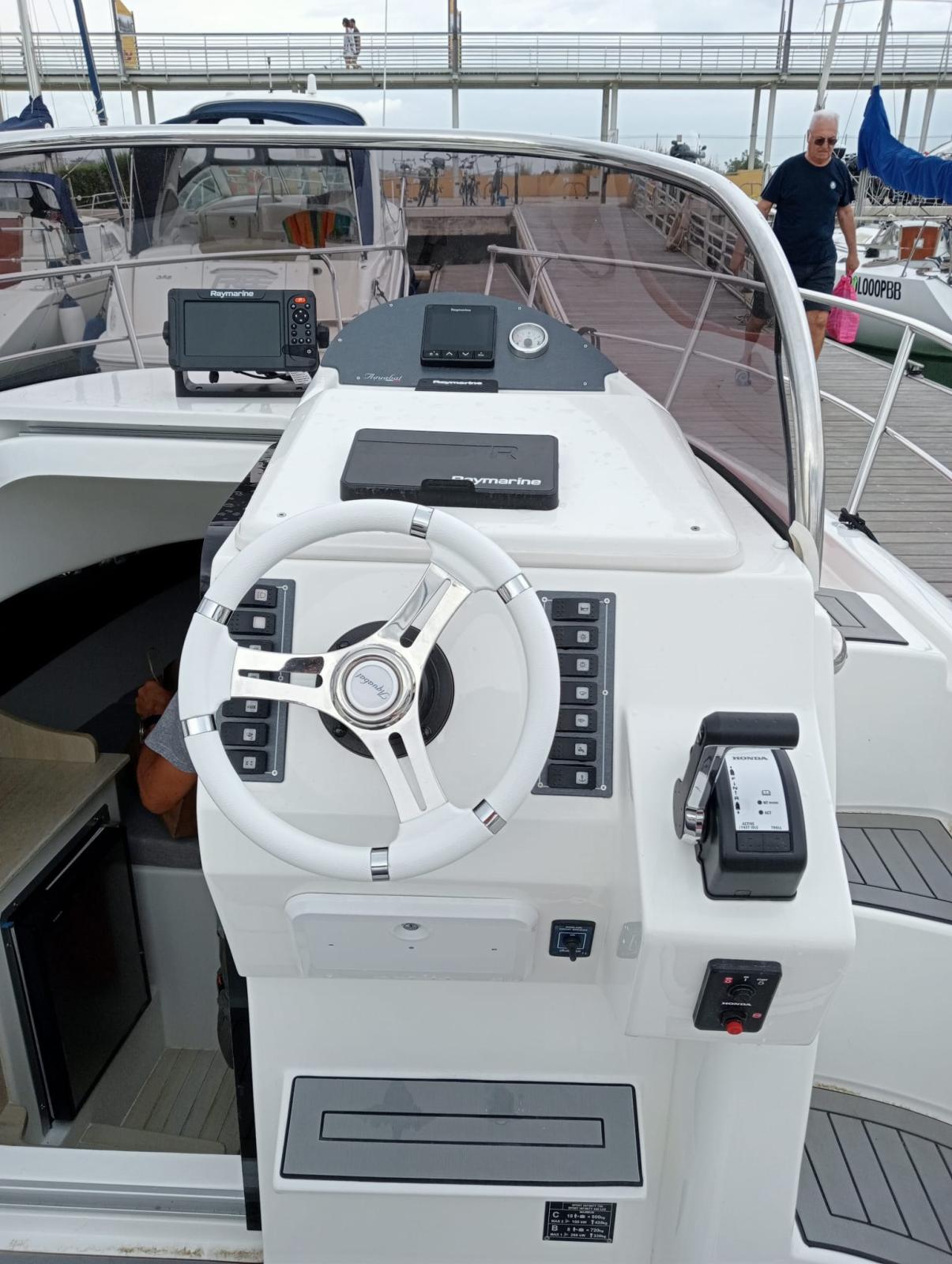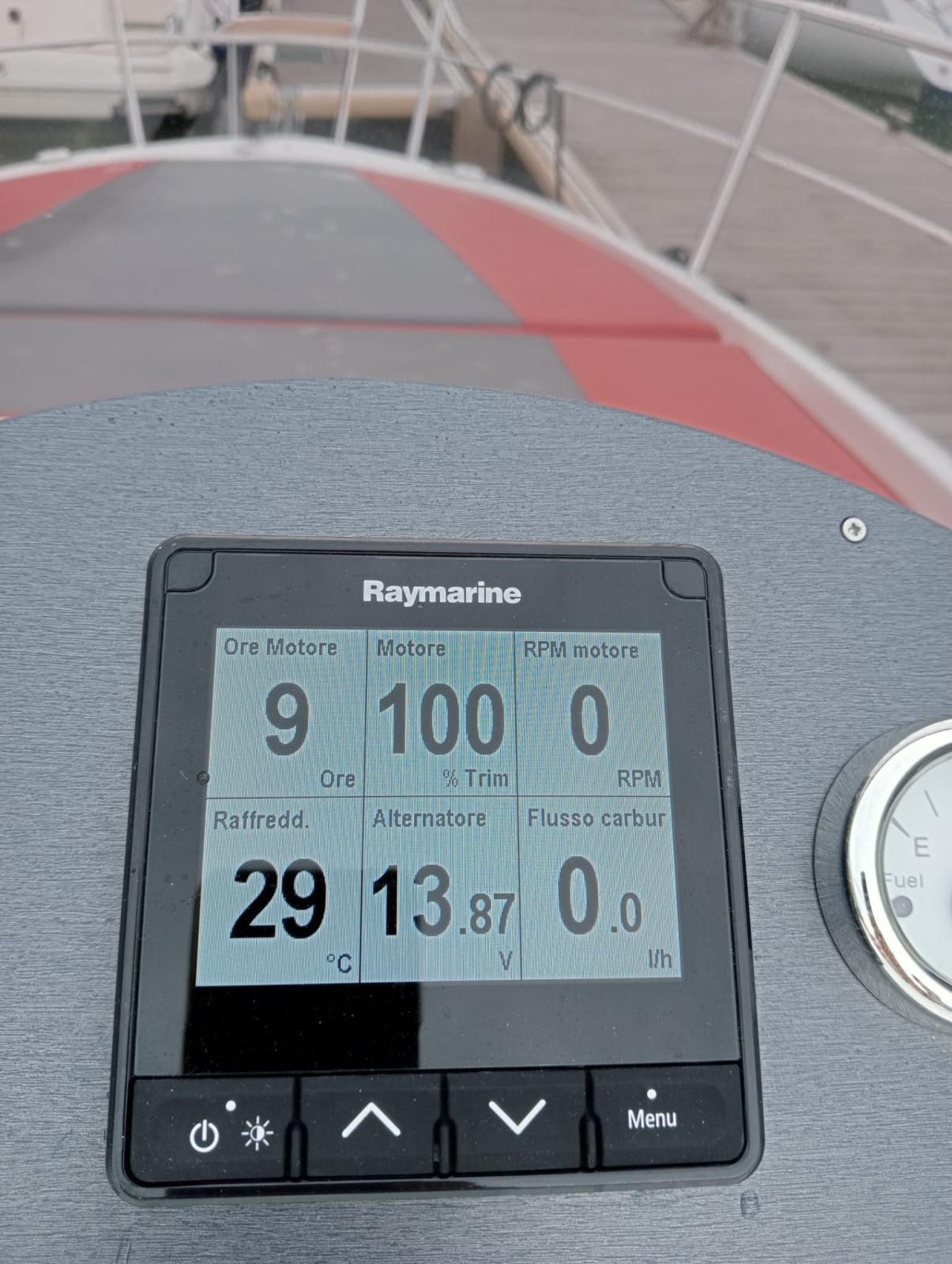 Angolo barra, Comando motori elettronico, Computer di bordo, Display, DSC vhf, Plotter con antenna GPS.