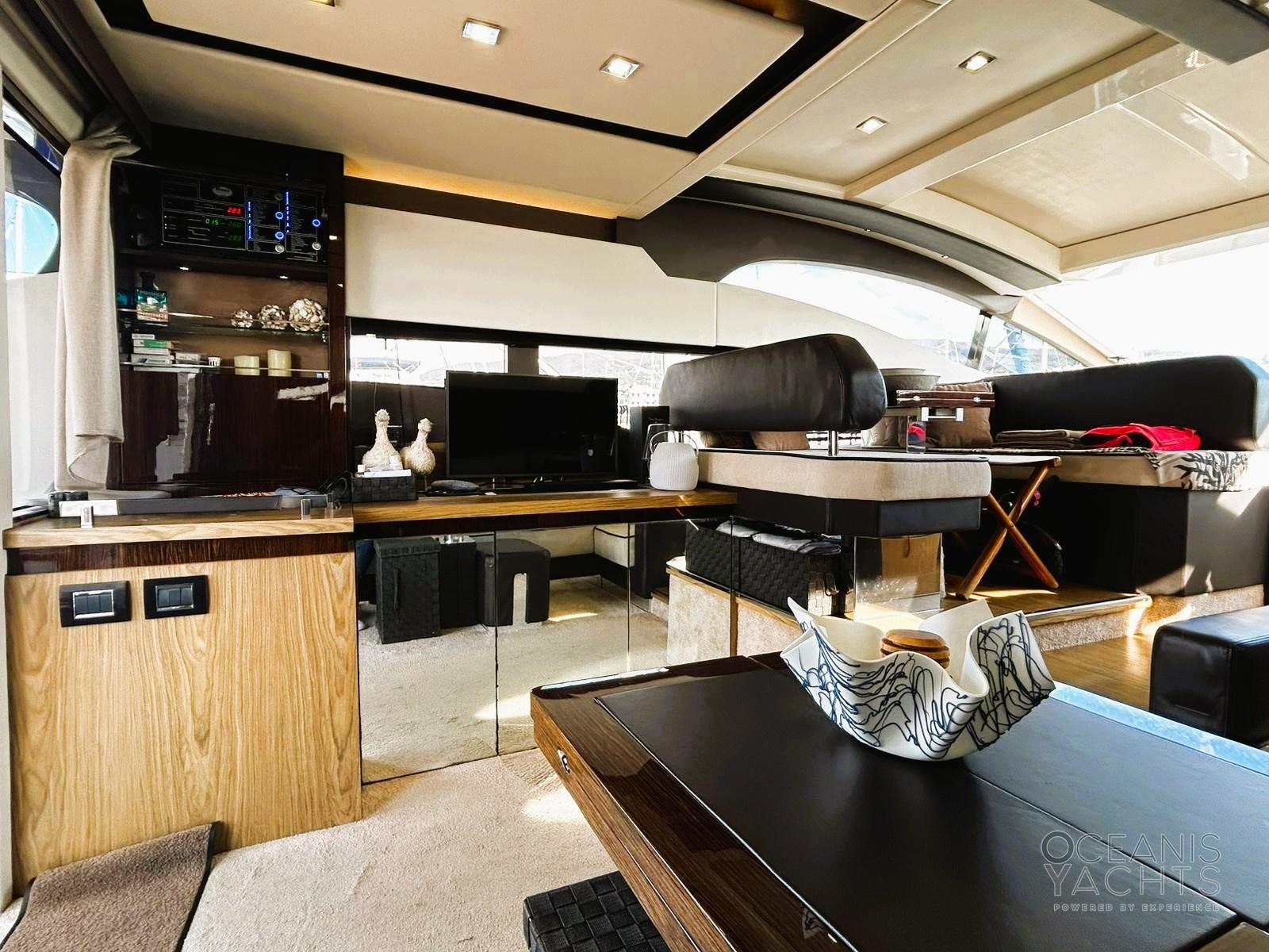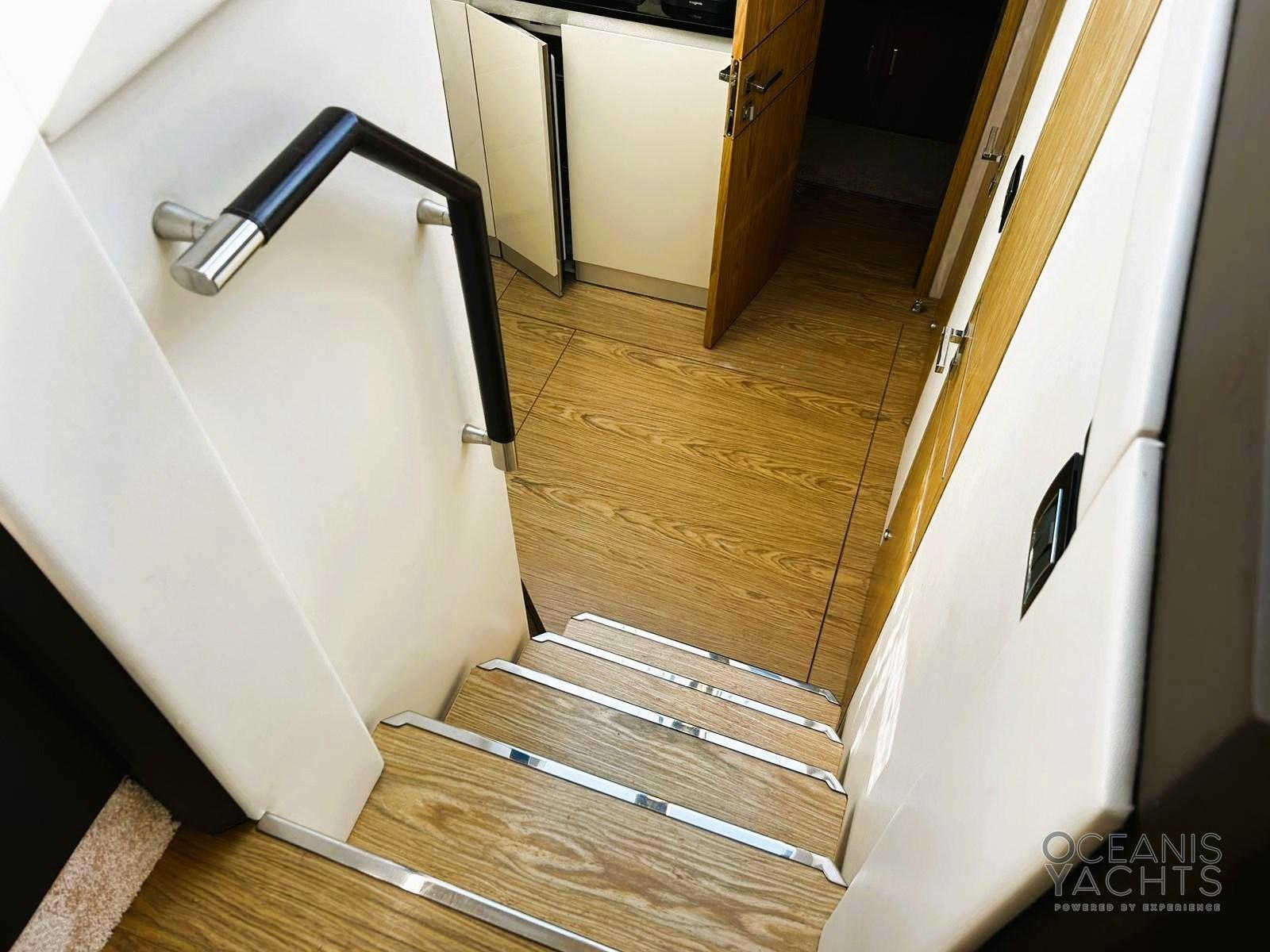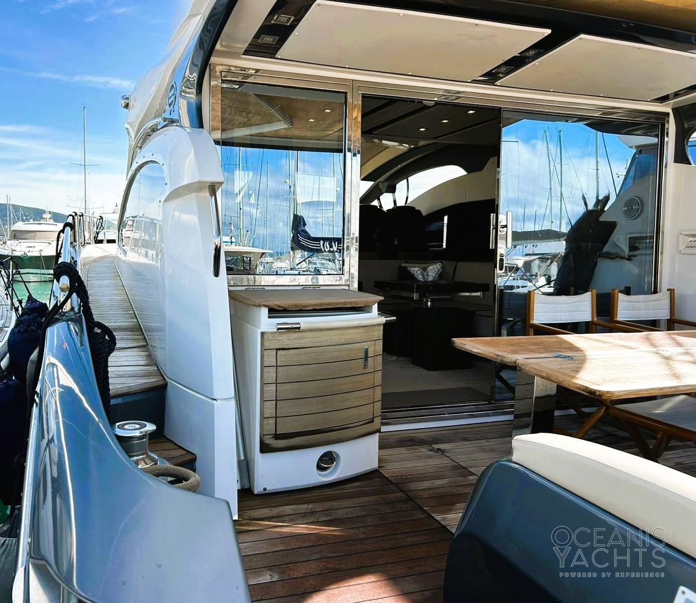 Allarme motore, Allarme sentina, Alternatore, Autoclave, Auto-Trim, Faro orientabile, Flap elettrici, Hard top, Luci di cortesia, Parabordi, Passerella (idraulica), Piattaforma (affontabile), Pompa di sentina automatica, Pompa di sentina manuale, Ponte in teak, Porta ingresso, Pozzetto Teak, Presa 220V banchina, Salpa Ancore Elettrico, Scaletta da bagno, Tavolo pozzetto, Tromba, 2 Winch tonneggio di poppa.