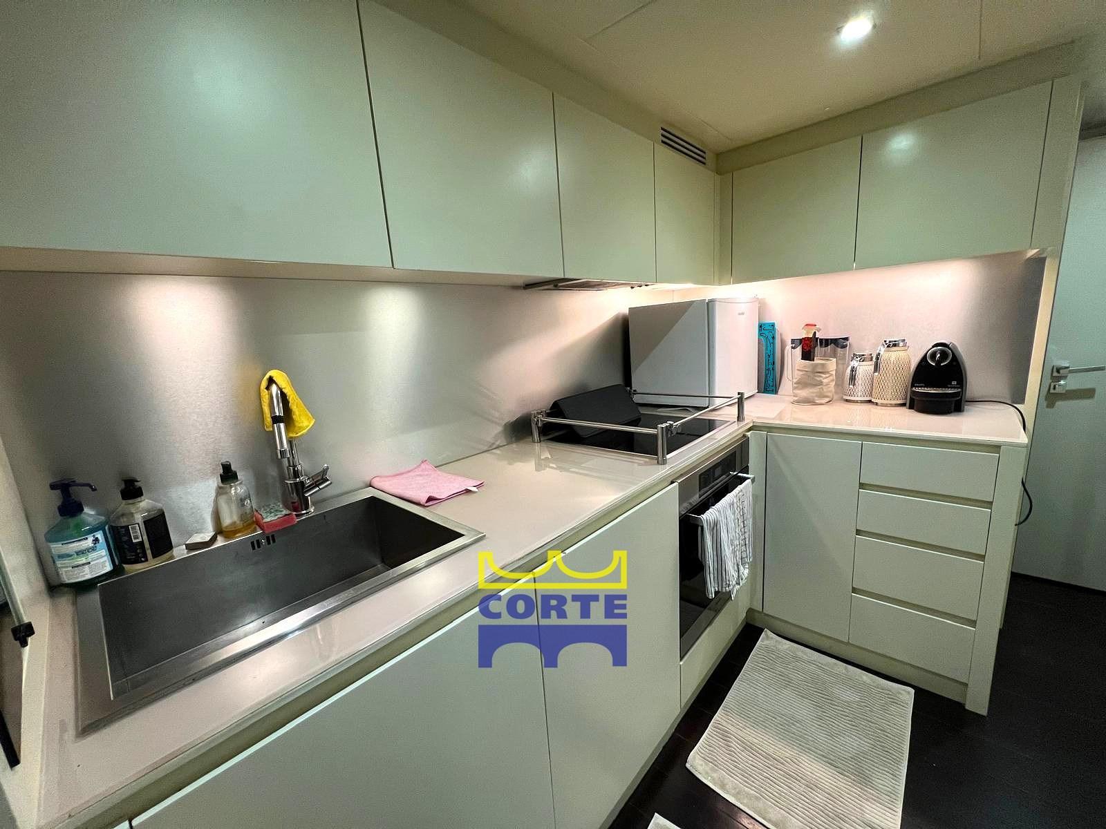 Cucina attrezzata con piano cottura, lavastoviglie, forno, frigorifero americano Samsung nuovo con congelatore.
