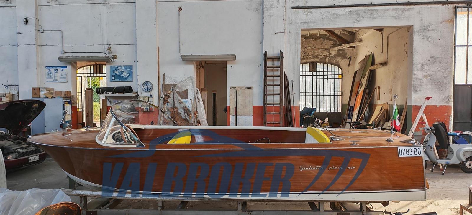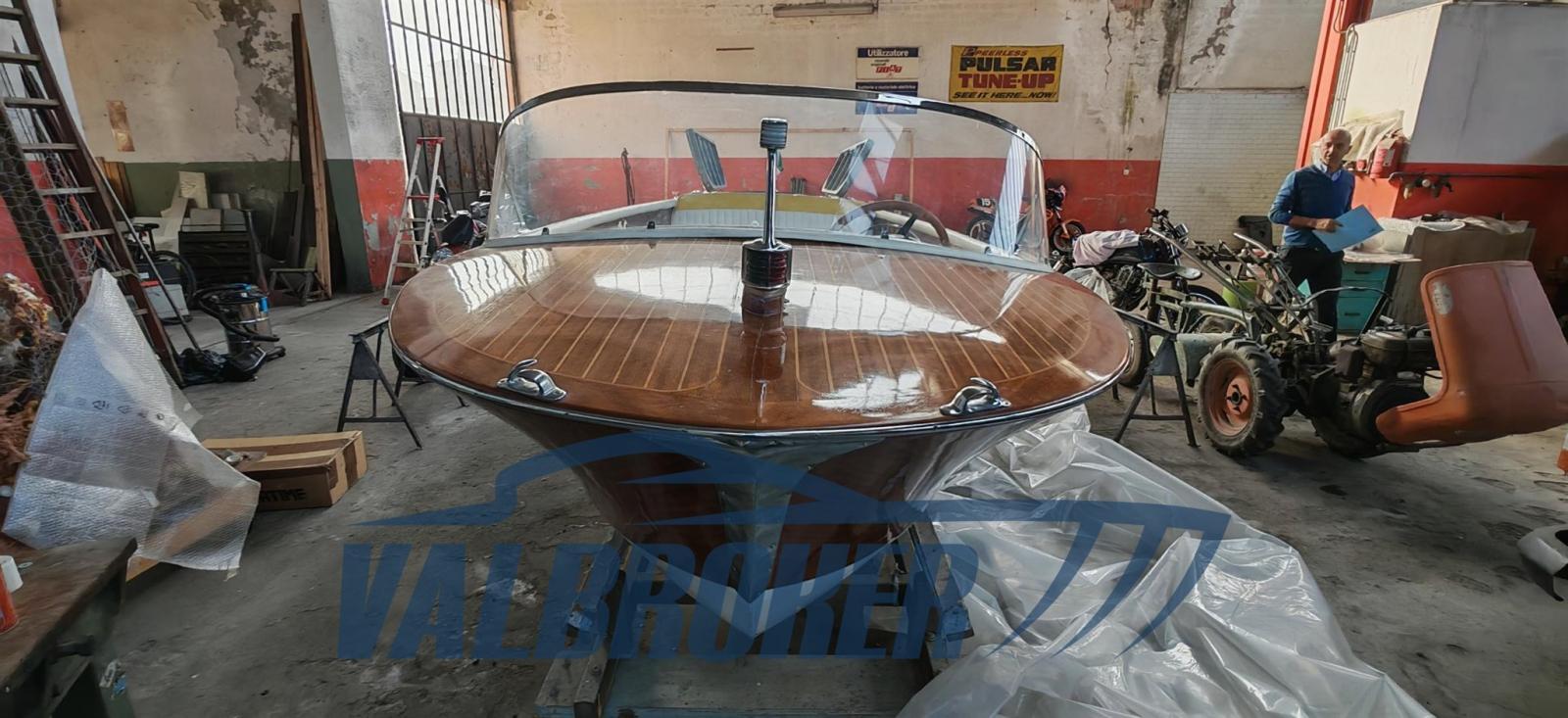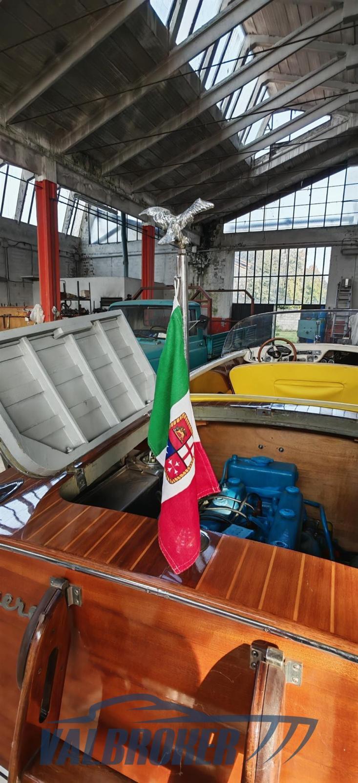 ancora con cavo, cuscini per sedili, materassini prendisole in gommapiuma, due pagaie di cui una a mezzomarinaio, fanaleria regolamentare, cappa da notte impermeabile, parabrezza in plexiglass, contagiri, manometro olio, indicatore carica dinamo.