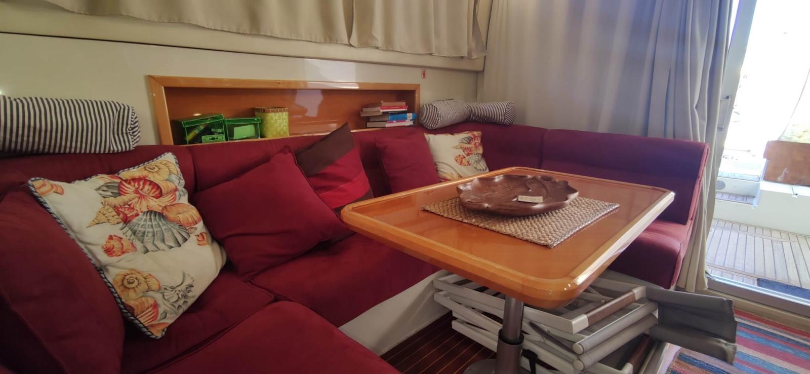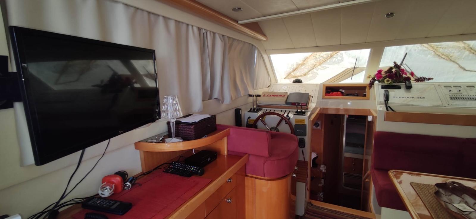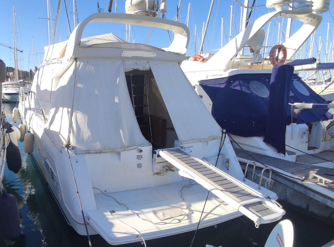 Allarme motore, Autoclave, 4 Batterie, Doccia esterna, Doppia timoneria, 2 Elica di rispetto, Flap idraulici, Indicatori Flaps, Luci di cortesia, Passerella (idraulica Besenzoni), Piattaforma, Pompa di sentina manuale, Porta ingresso, Pozzetto Teak, Presa 220V banchina, Salpa Ancore Elettrico, Scaletta da bagno, Tromba.