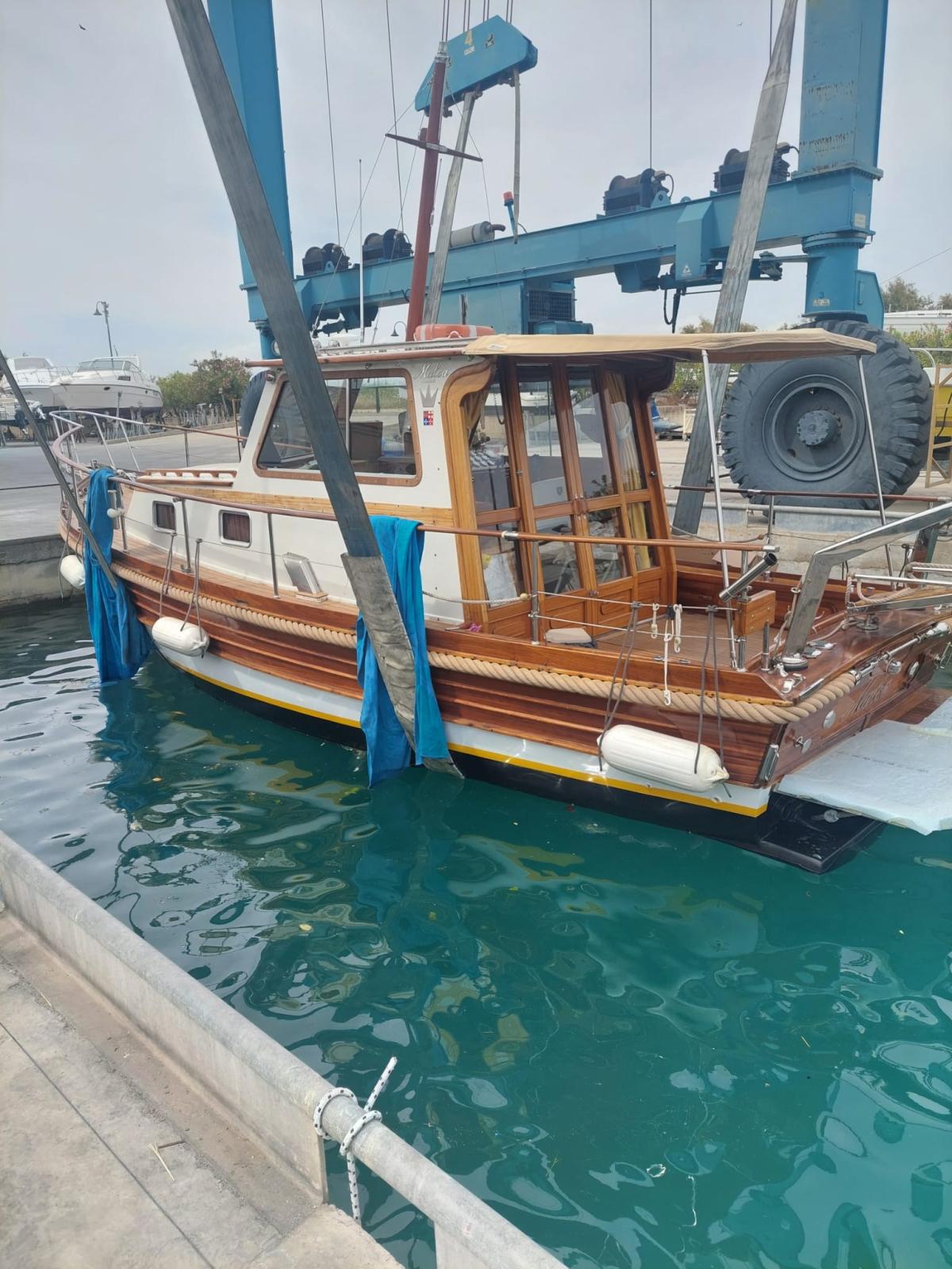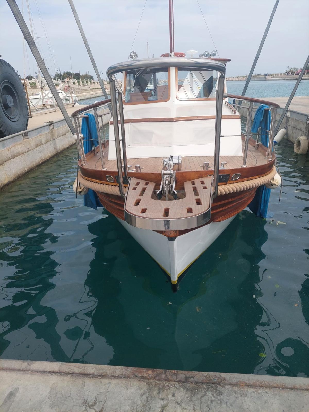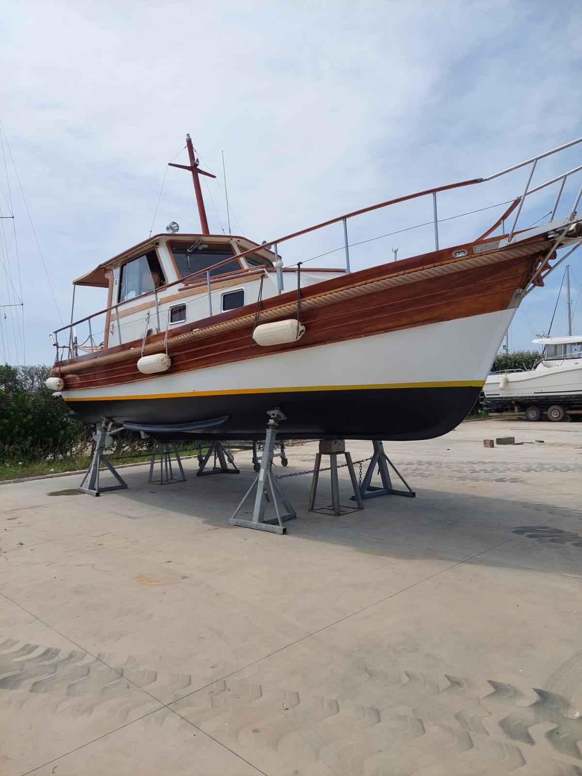 Barca in fasciame di mogano rivestito con resina, curata e refittata completamente nel 2008 con motori nuovi.