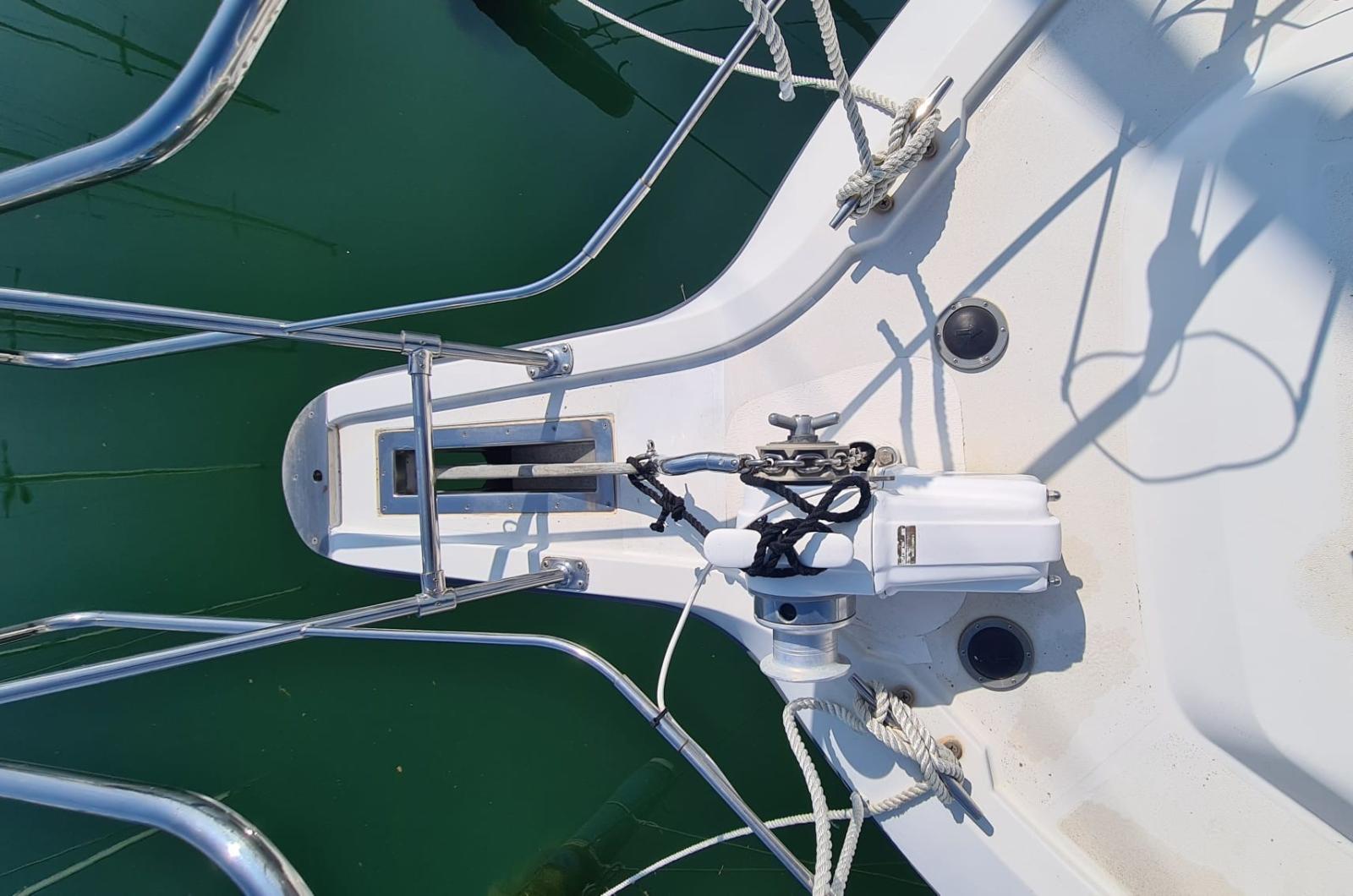 Ancora (con 50 m catena inox 2019), Autoclave (nuovo 2023), 5 Batterie (nuove 2023), Doccia esterna, Luci di cortesia, 2 Pannelli Solari (2019), Passerella, Piattaforma, Pompa di sentina automatica, Porta ingresso, Presa 220V banchina, Presa acqua banchina, Salpa Ancore Elettrico, Scaletta da bagno, Tavolo pozzetto, Tender, Winch tonneggio di prua.