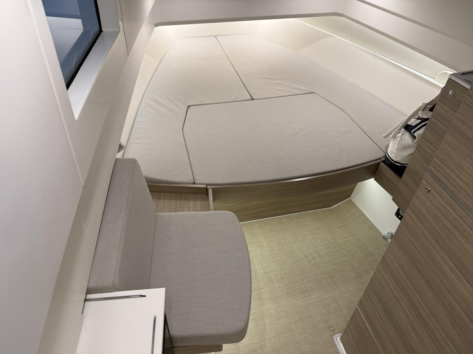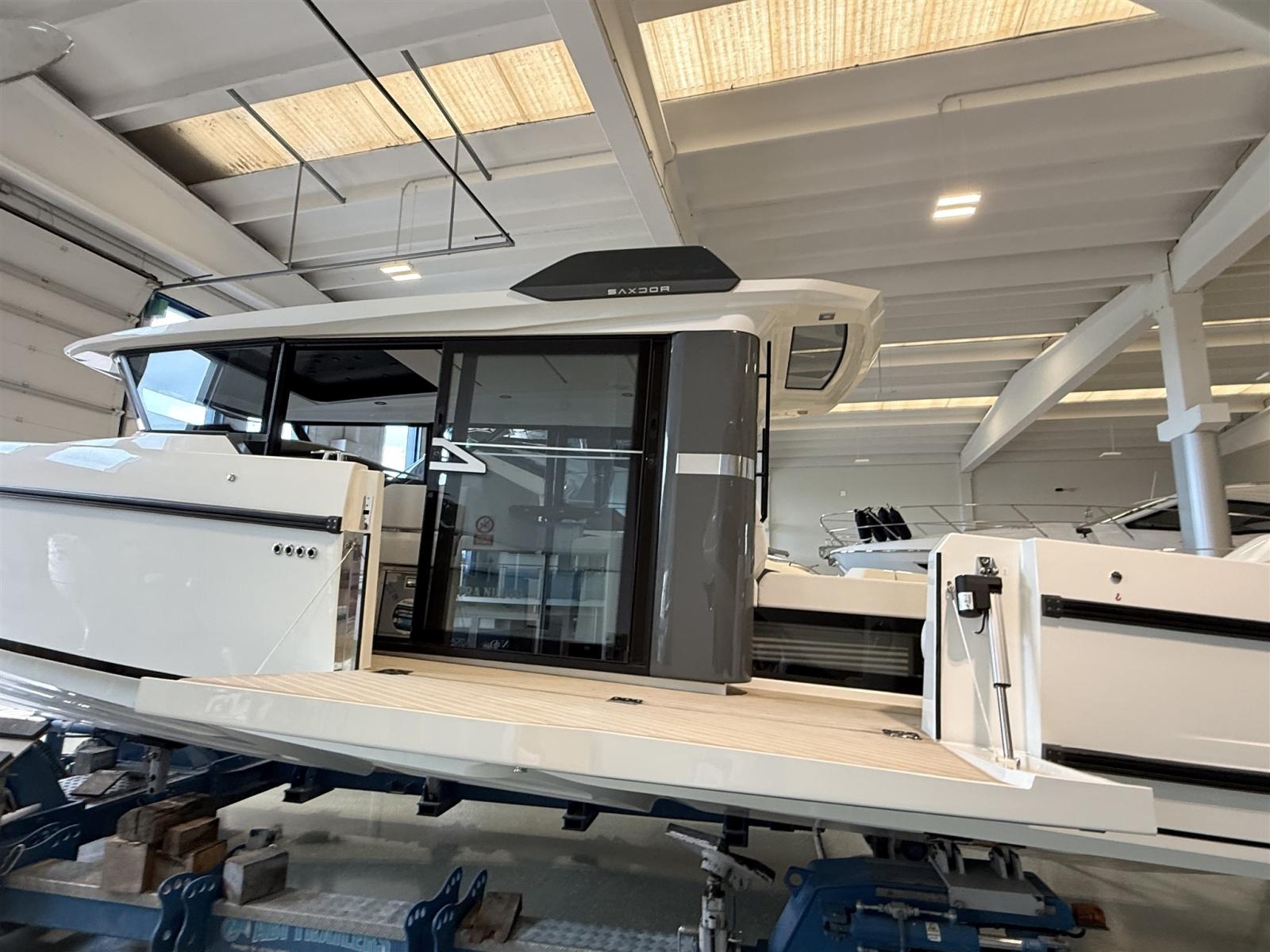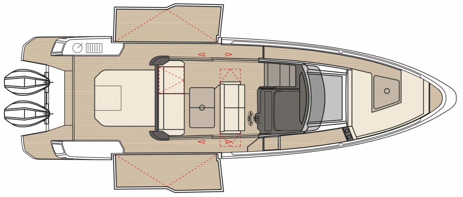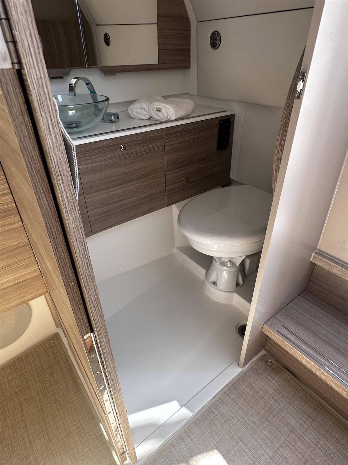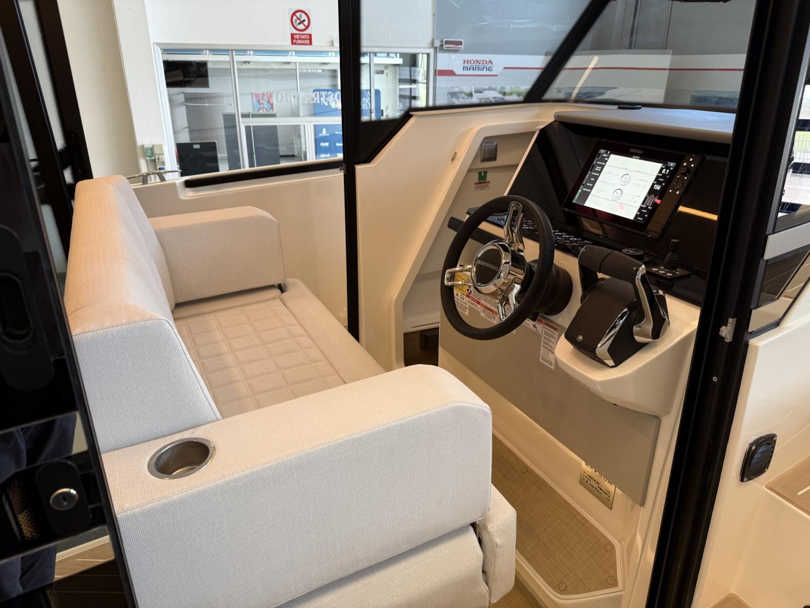 Barca configurata full optional: motori 2x300 Mercury bianchi, aria condizionata con inverter e batterie al litio, flexiteek, elica di prua, tetto apribile elettrico, allestimento cabina di poppa, flaps automatici zipwake, barbecue di poppa, frigo, navigation package, cancelletti di poppa.