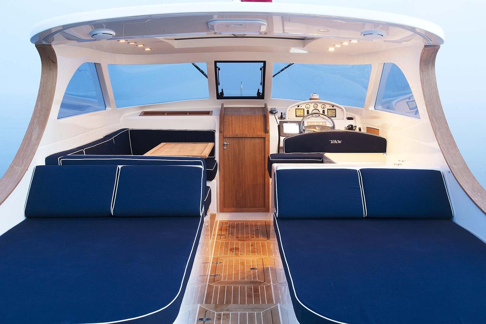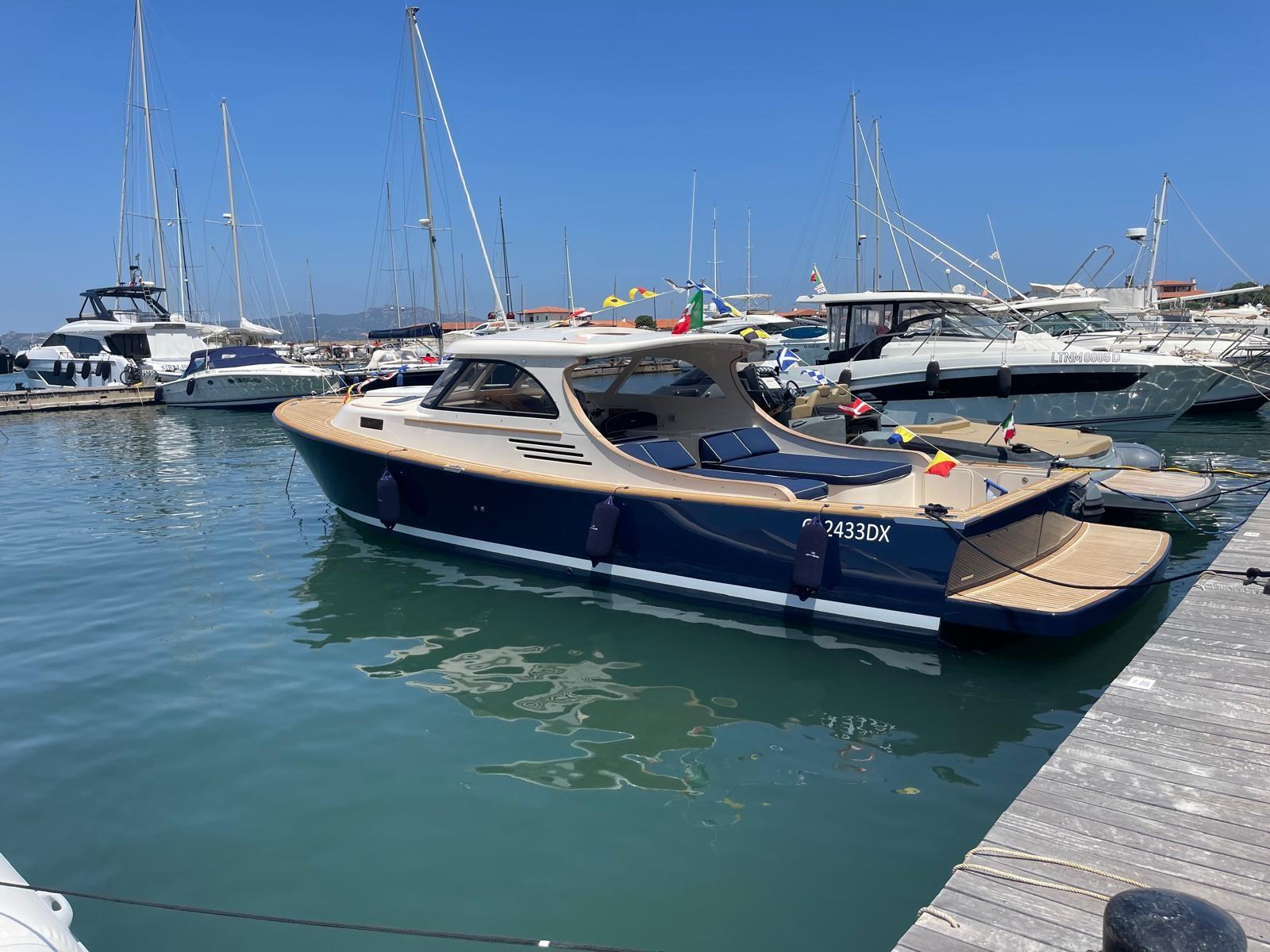 The Toy 36 by Toy Marine is an 11-metre (36-foot) lobster boat that reinterprets classic American style in a modern and elegant way. Manufactured in Savona, Italy, it is a semi-custom "small masterpiece". Known for its deep V-shaped hull, it offers stability, comfort and timeless lines, ideal for day cruising. Inspired by American lobster boats of the 1930s, it combines Italian elegance with high-quality materials and tailor-made attention to detail. It features a large cockpit, a covered dinette with sunroof, a sundeck at the bow and a V-shaped master cabin with a bathroom with shower. Designed to be safe and easy to manoeuvre, it is fitted with easily accessible in-line engines under the triumphant aft sunbathing areas. The Toy 36 is rightly considered a forefather of the lobster boat genre in Italy, appreciated for its timeless classic lines.