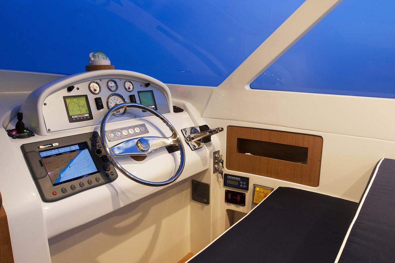 Bussola (Ritchie), Comando motori elettronico, Computer di bordo, 2 Display (Yanmar), Joystick, Plotter con antenna GPS, Quadro comandi, Radio VHF (Raymarine E240).
