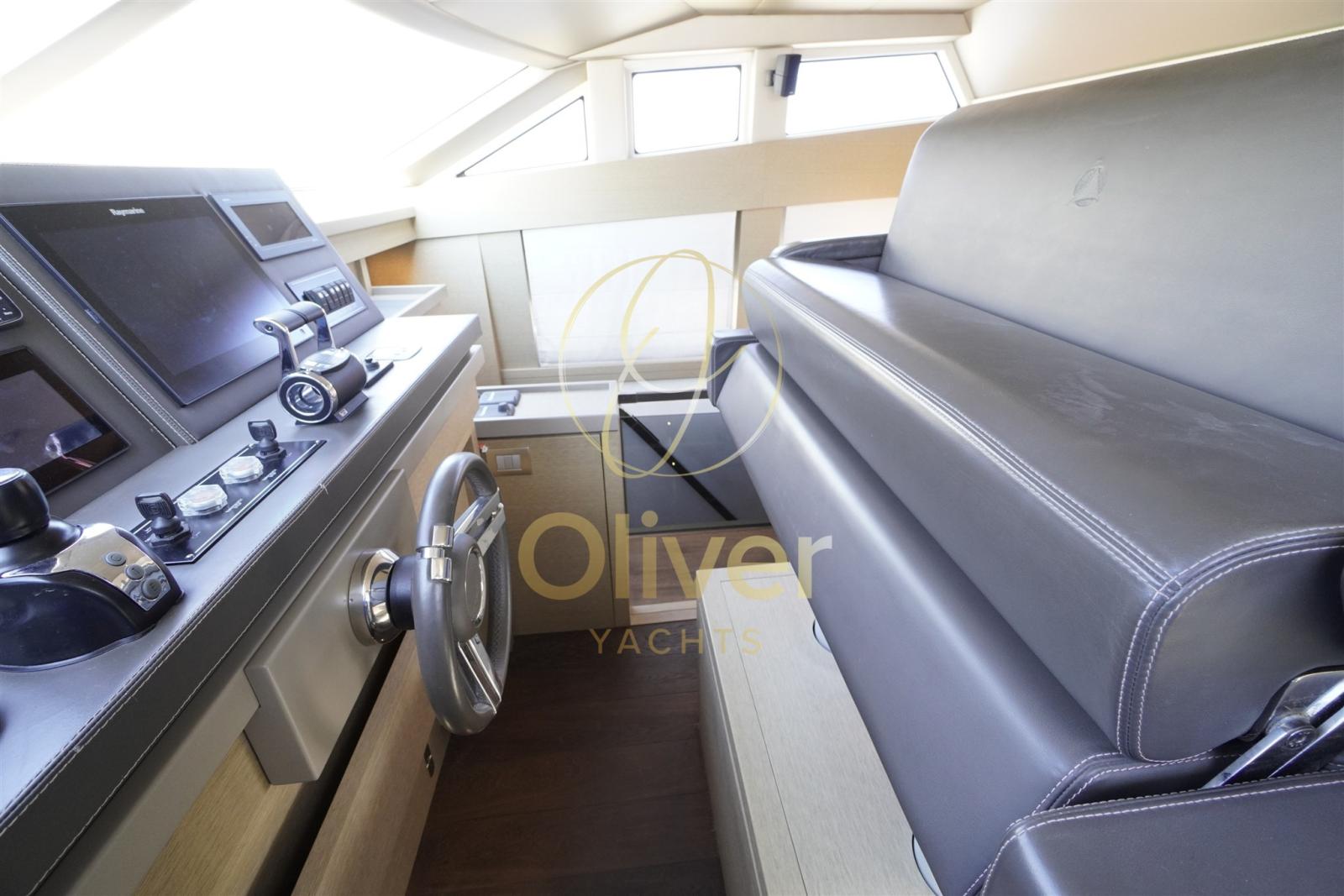Gli interni della Prestige 750 sono progettati per offrire volume, luce naturale e funzionalità reale. Il salone principale è ampio, con grandi finestrature panoramiche che garantiscono luminosità costante e vista aperta sul mare. La zona living è ben separata dalla dining area, creando ambienti distinti ma fluidi.