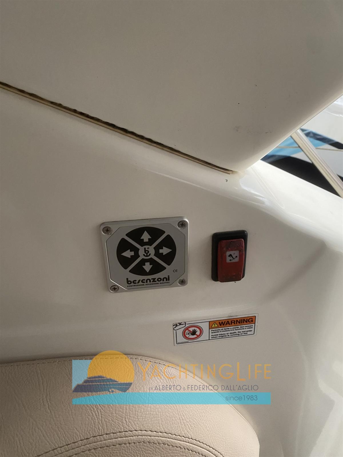 Allarme motore, Autoclave, Indicatori Flaps, Motore fuoribordo per tender (4hp Suzuki), Passerella, Piattaforma, Pompa di sentina automatica, Presa 220V banchina, Presa acqua banchina, Rollbar, Salpa Ancore Elettrico, Scaletta da bagno, Tavolo pozzetto, Tender (2025), Tromba.