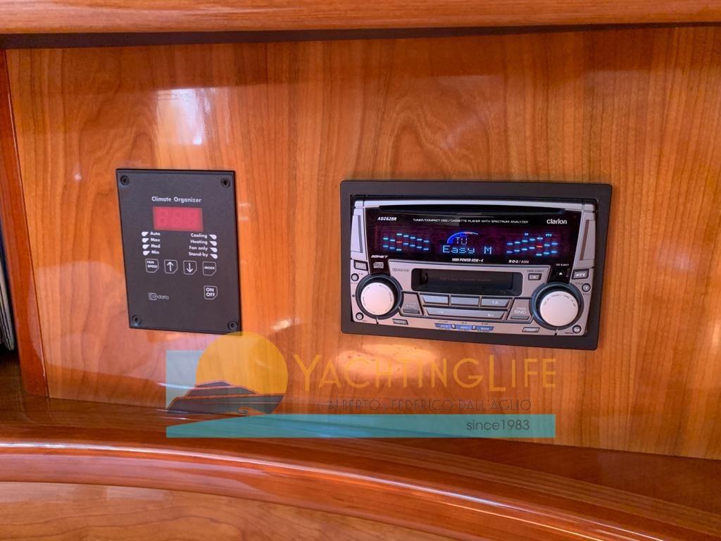 Allarme motore, Allarme sentina, Autoclave, Doccia esterna, Faro orientabile, Flap idraulici, Garage per tender, Indicatori Flaps, Luci di cortesia, Passerella (idraulica), Piattaforma, Pompa di sentina automatica, Porta ingresso, Pozzetto Teak, Presa 220V banchina, Rollbar, Salpa Ancore Elettrico, Scaletta da bagno, Tavolo pozzetto, Tromba, Winch tonneggio di poppa.