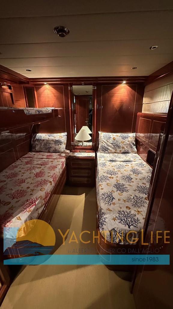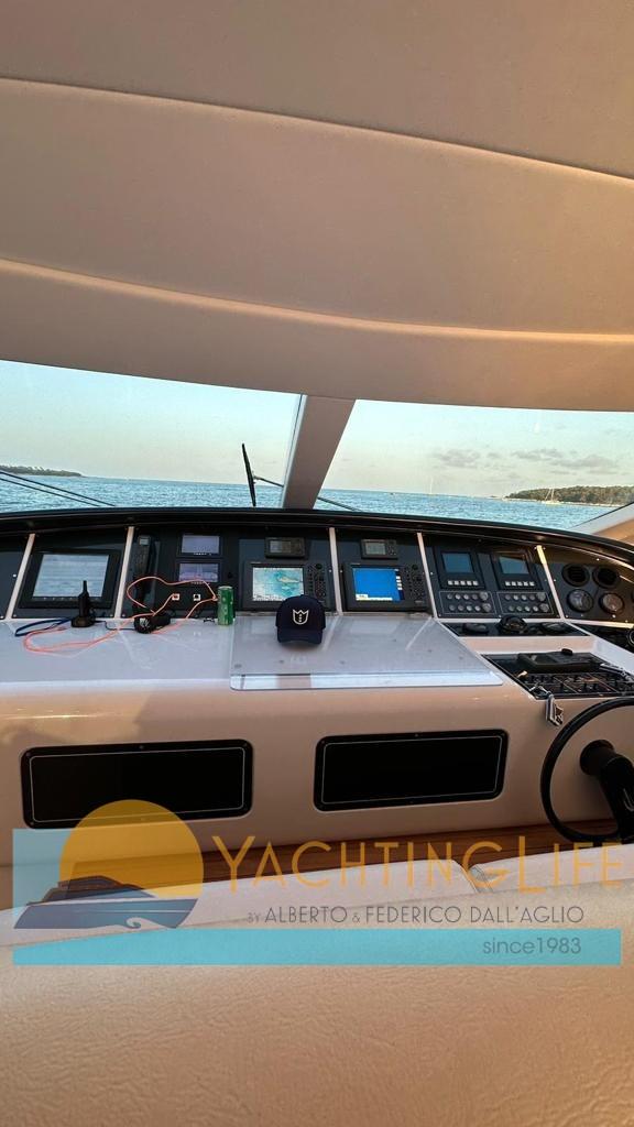 Allarme motore, Allarme sentina, Autoclave, Doccia esterna, Faro orientabile, Flap idraulici, Garage per tender, Hard top, Impianto antincendio, Indicatori Flaps, Lavaggio catena, Luci di cortesia, Passerella, Piattaforma, Pozzetto Teak, Presa 220V banchina, Raddrizzatore, Salpa Ancore Elettrico, Scaletta da bagno, Tromba, 2 Winch tonneggio di poppa.