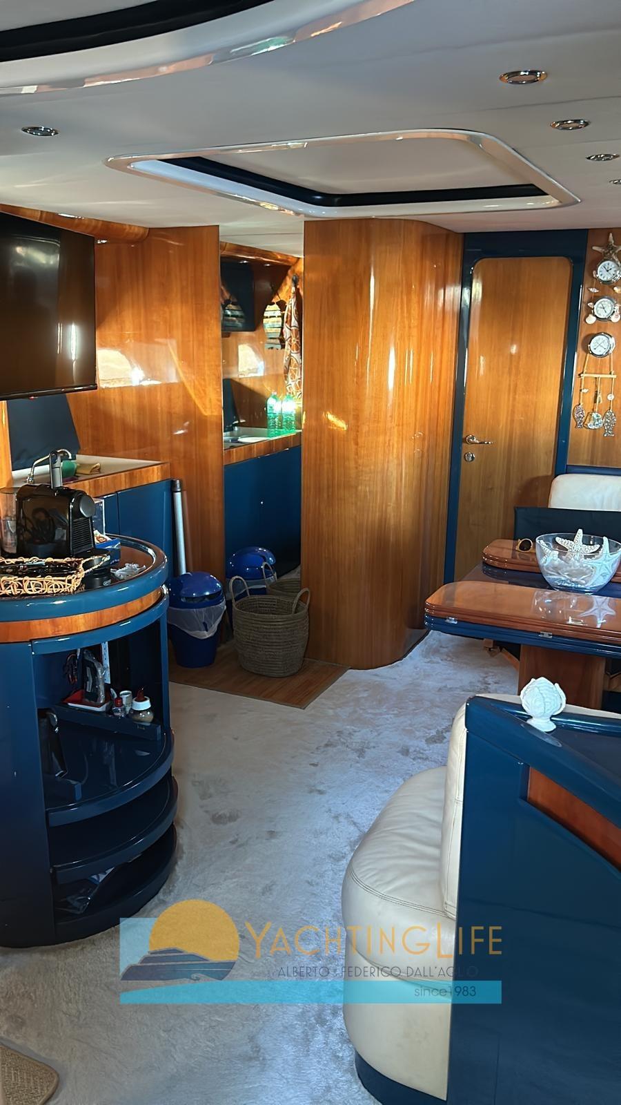 Ottime condizioni - Doppio set di tendalini uno beige 2020, l'altro nero 2021 con chiusura pozzetto e microforato laterale Sunbrella - Motori sbarcati e revisionati 2019 (canne, pistoni, fasce, bronzine di banco e di biella, valvole, prove idrauliche teste, spianate teste, aperti scambiatori, sostituiti o-ring e puliti sia acqua che olio, tubazioni, coppa olio, revisione turbine, iniettori e pompa alla Man per revisione, revisione invertitori, verniciati, sostituiti gomiti scarico, revisione motorini avviamento e alternatori, boccole assi, silent block, impianto nafta) dopo revisione fatte 500 ore - Tubazioni motori acqua salata 2023 - Revisione verricello 2022 - Teak massello pozzetto e pedana 2020 - Lavori 2024: riverniciata poppa, carena a zero, coibentazione sala macchine, sostituzione prese mare motori e generatore e revisione antincendio - Sensori e tubazioni passerella idraulica revisionati-