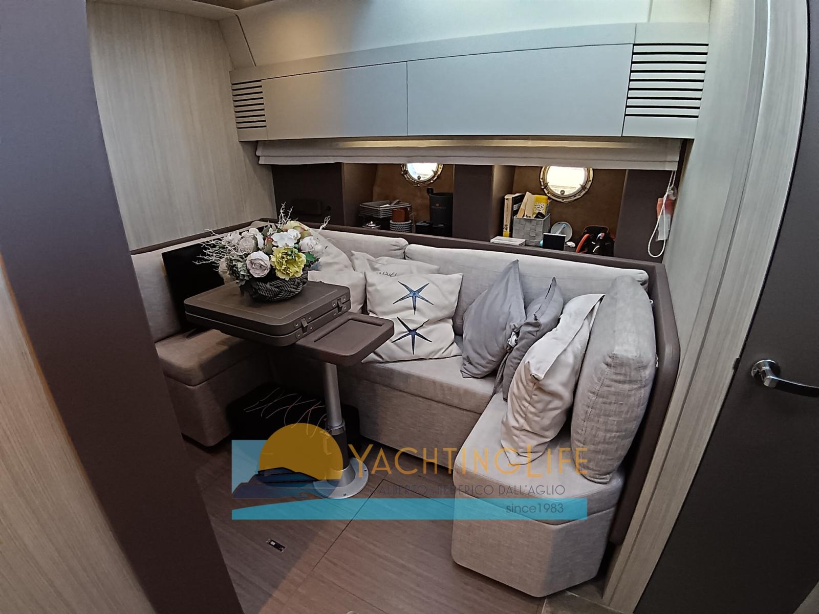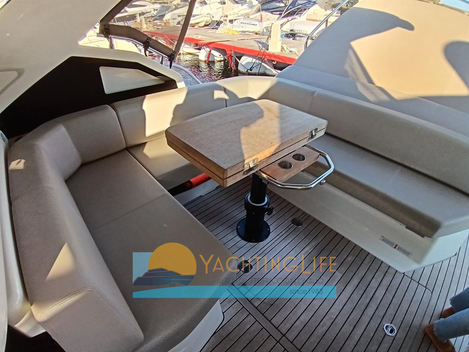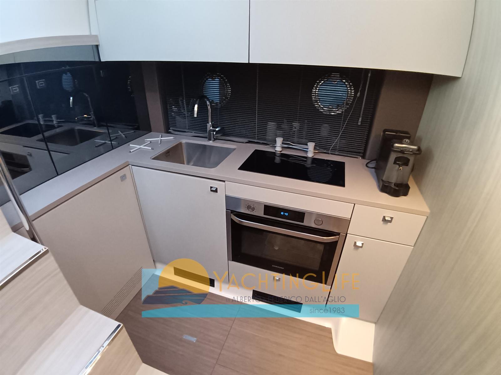 Allarme motore, Allarme sentina, Autoclave, Doccia esterna, Flap elettrici, Garage per tender, Hard top, Impianto antincendio, Indicatori Flaps, Lavandino nel Pozzetto, Luci di cortesia, Luci subacquee, Passerella (idraulica), Piattaforma (idraulica), Pompa di sentina automatica, Pozzetto Teak, Presa 220V banchina, Salpa Ancore Elettrico, Scaletta da bagno, Tavolo pozzetto, Tender (e motore), Tromba.