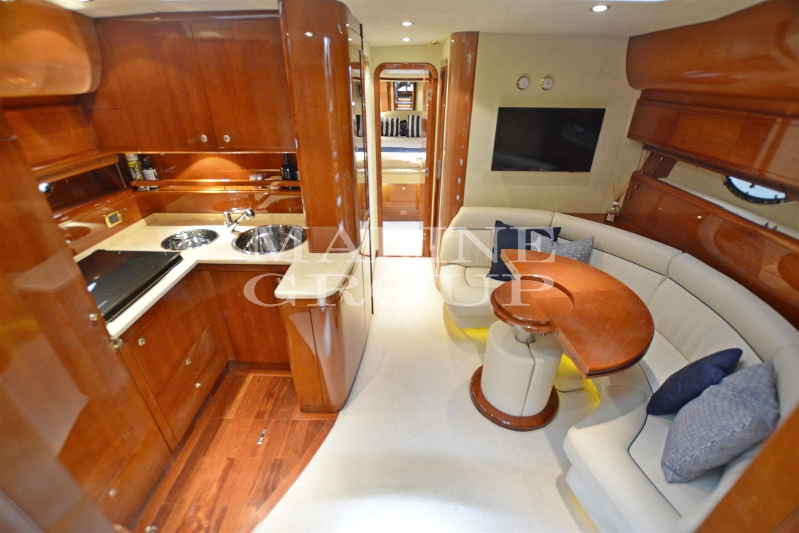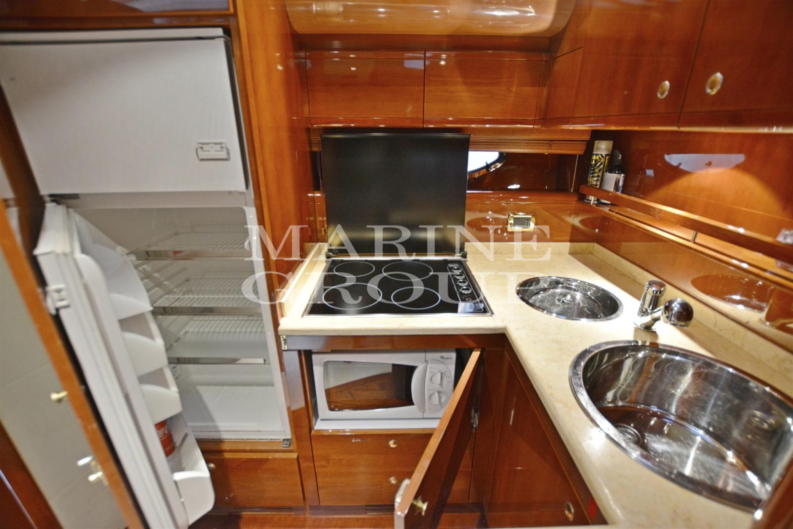 Elica di prua - Flaps idraulici - Verricello di tonneggio di poppa - Verricello elettrico ancora - Boiler - Autoclave - Carica batterie - Generatore - Impianto climatizzazione convertibile con comando separato in ogni ambiente - Impianto radio/stereo in tutte le cabine e in pozzetto - Impianto TV in salone e in cabina armatore - Passerella idraulica a scomparsa - Scaletta bagno - Teak nel pozzetto - Teak in plancetta - Cuscinerie esterne complete - Luci di cortesia a led - Telo chiusura pozzetto - Doccetta in plancetta - Garage per il tender - In pozzetto wet bar dotato di lavello, frigo e grill - Internamente cucina con pavimento in legno equipaggiata con piano cottura in vetroceramica, lavello doppio, forno microonde, frigo a colonna con frezeer - Salone con divano in pelle avorio, tavolo con piano in ciliegio e grande TV