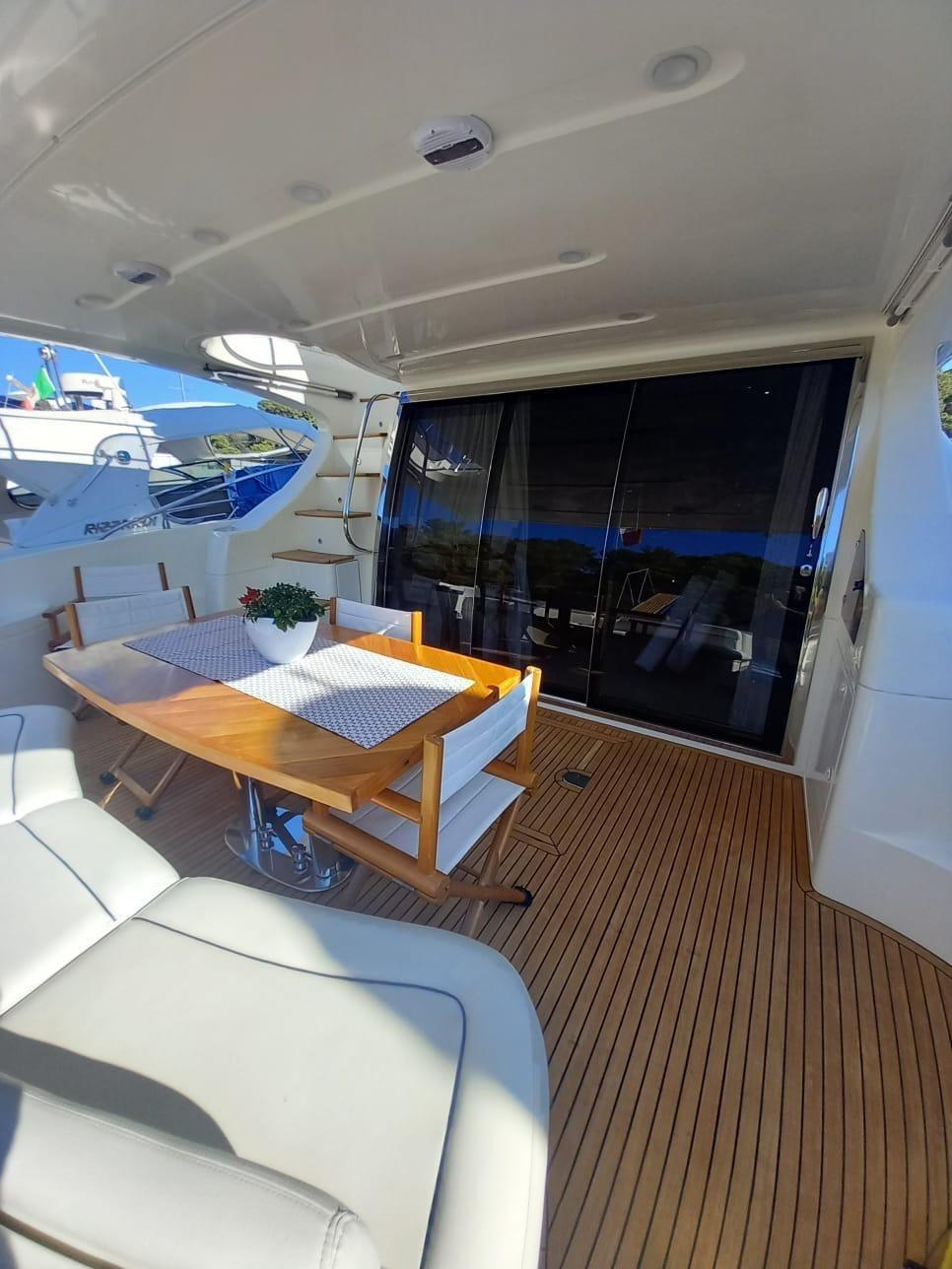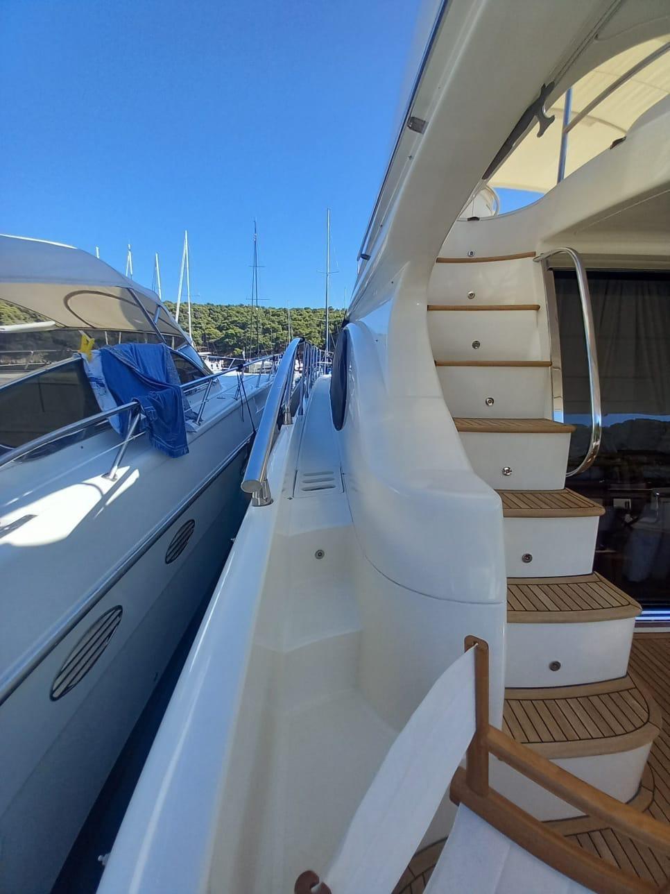 Allarme fumo/gas, Allarme motore, Allarme sentina, Autoclave, Doccia esterna, Flap idraulici, Impianto antincendio, Indicatori Flaps, Lavaggio catena, Luci di cortesia, Luci subacquee, Passerella, Piattaforma, Pompa di sentina automatica, Pompa di sentina manuale, Pozzetto Teak, Presa 220V banchina, Salpa Ancore Idraulico, Scaletta da bagno, Tromba, Winch tonneggio di poppa.