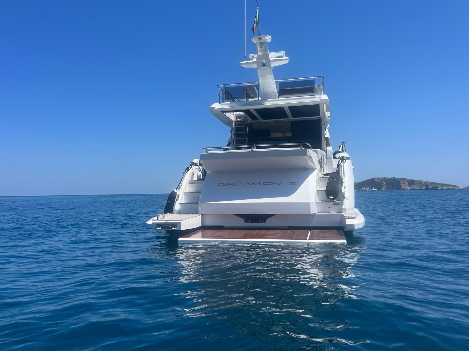 Allarme motore, Allarme sentina, Alternatore, Autoclave, Doccia esterna, Faro orientabile, Flap elettrici, Garage per tender, Impianto antincendio, Indicatori Flaps, Lavaggio catena, Lavandino nel Pozzetto, Luci di cortesia, Luci subacquee, Passerella, Piattaforma, Pompa di sentina automatica, Pompa di sentina manuale, Porta laterale, Pozzetto Teak, Presa 220V banchina, Salpa Ancore Elettrico, Scaletta da bagno, Tavolo pozzetto, Tromba, Winch tonneggio di poppa, Winch tonneggio di prua.