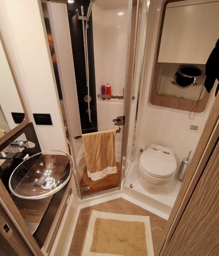 BBQ/ Grill, Boiler, Clima reversibile, Impianto acque nere, Pavimento interno in legno, Prese interne 12v, Prese interne 220v, Telecamera, Termovisore, WC marino elettrico.