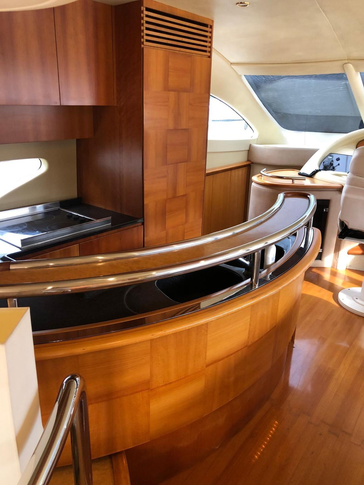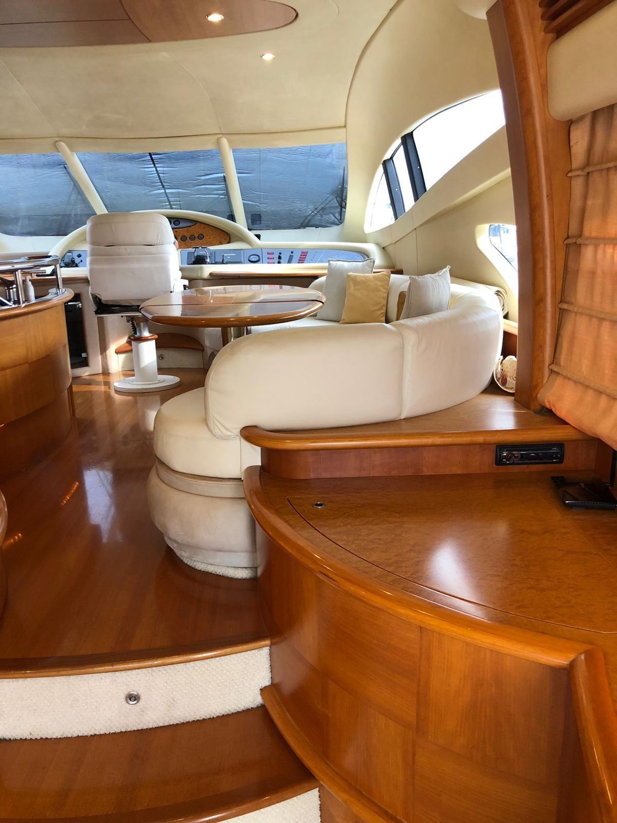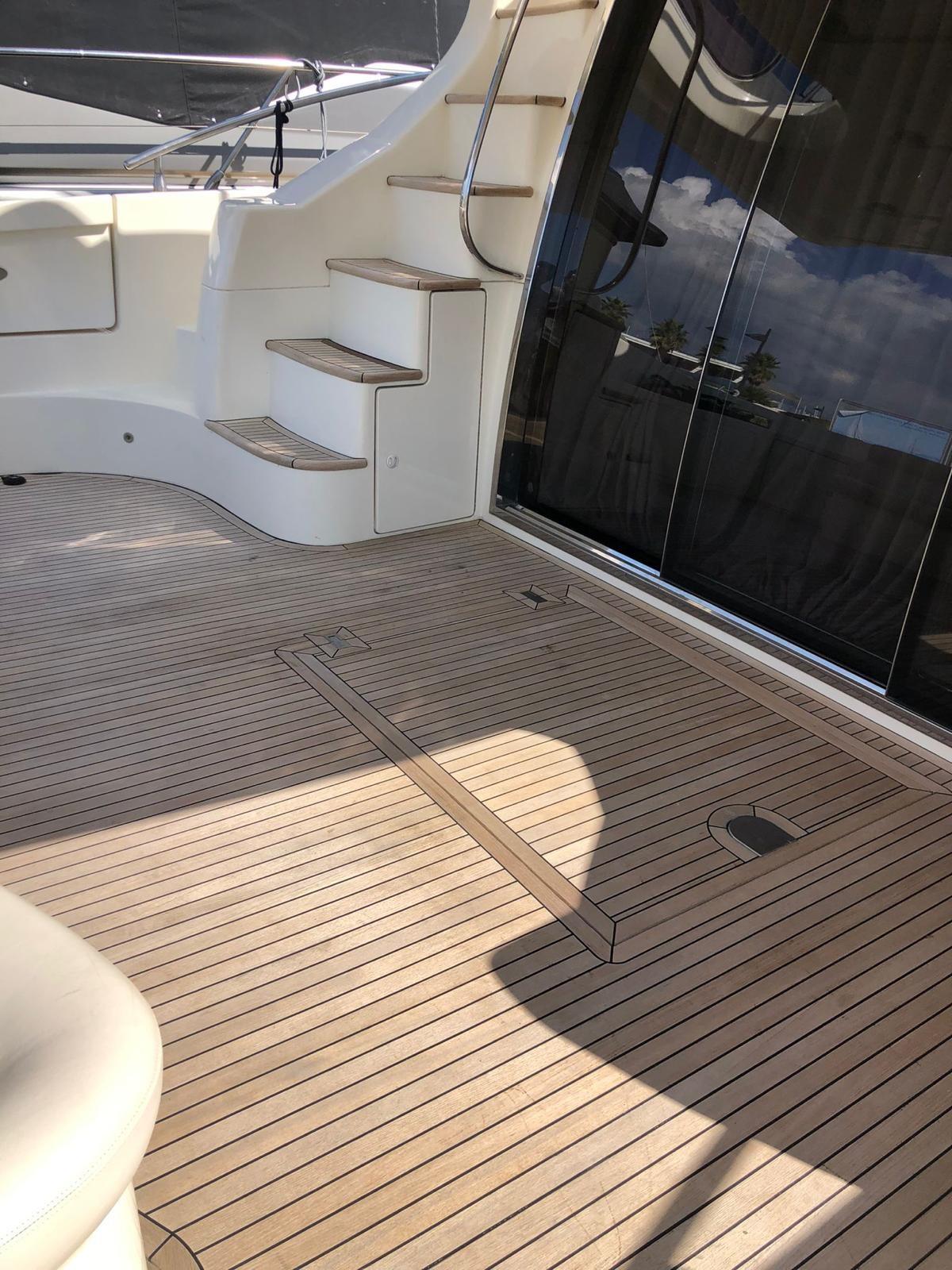 Allarme motore, Allarme sentina, Alternatore, Doccia esterna, Impianto antincendio, Lavandino nel Pozzetto, Luci di cortesia, Luci subacquee, Passerella, Pompa di sentina automatica, Pompa di sentina manuale, Ponte in teak, Pozzetto Teak, Presa 220V banchina, Presa acqua banchina, Salpa Ancore Idraulico, Scaletta da bagno, Selle per Tender, Tender, Tromba, Winch tonneggio di poppa, Winch tonneggio di prua.