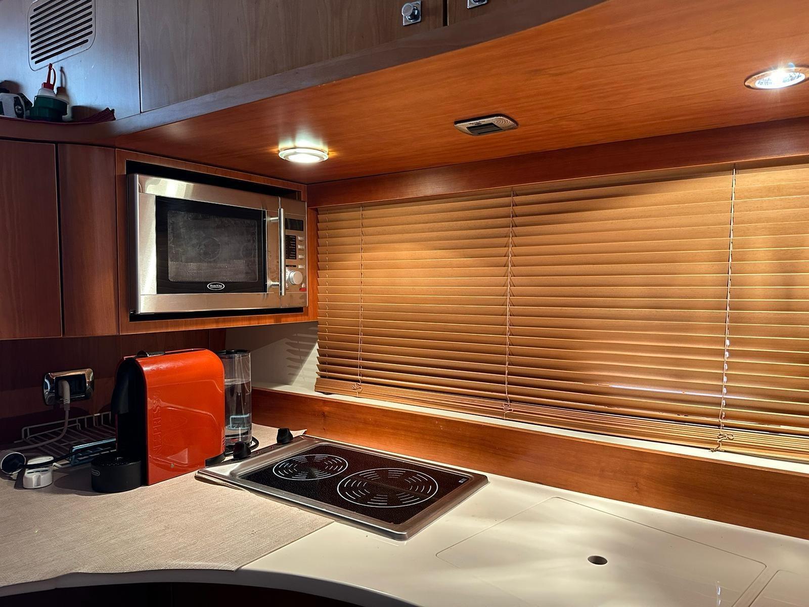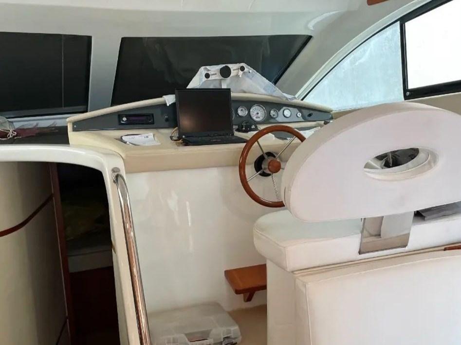Allarme fumo/gas, Allarme motore, Allarme sentina, Autoclave, 5 Batterie, Doccia esterna, Doppia timoneria, Faro orientabile, 2 Flap idraulici, Passerella (idraulica OPACMARE), Piattaforma, Pompa di sentina automatica, Pompa di sentina manuale, Pozzetto Teak, Presa 220V banchina, Raddrizzatore, Rollbar, Salpa Ancore Elettrico, Scaletta da bagno, Sistema Depurazione acque nere, Tavolo pozzetto.