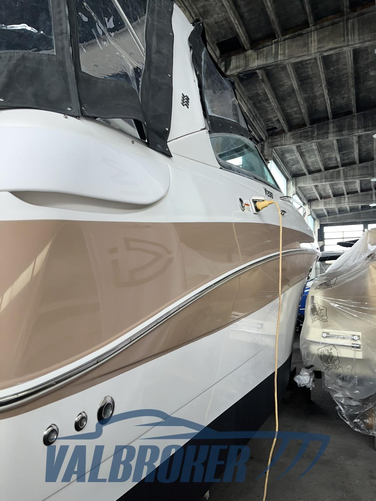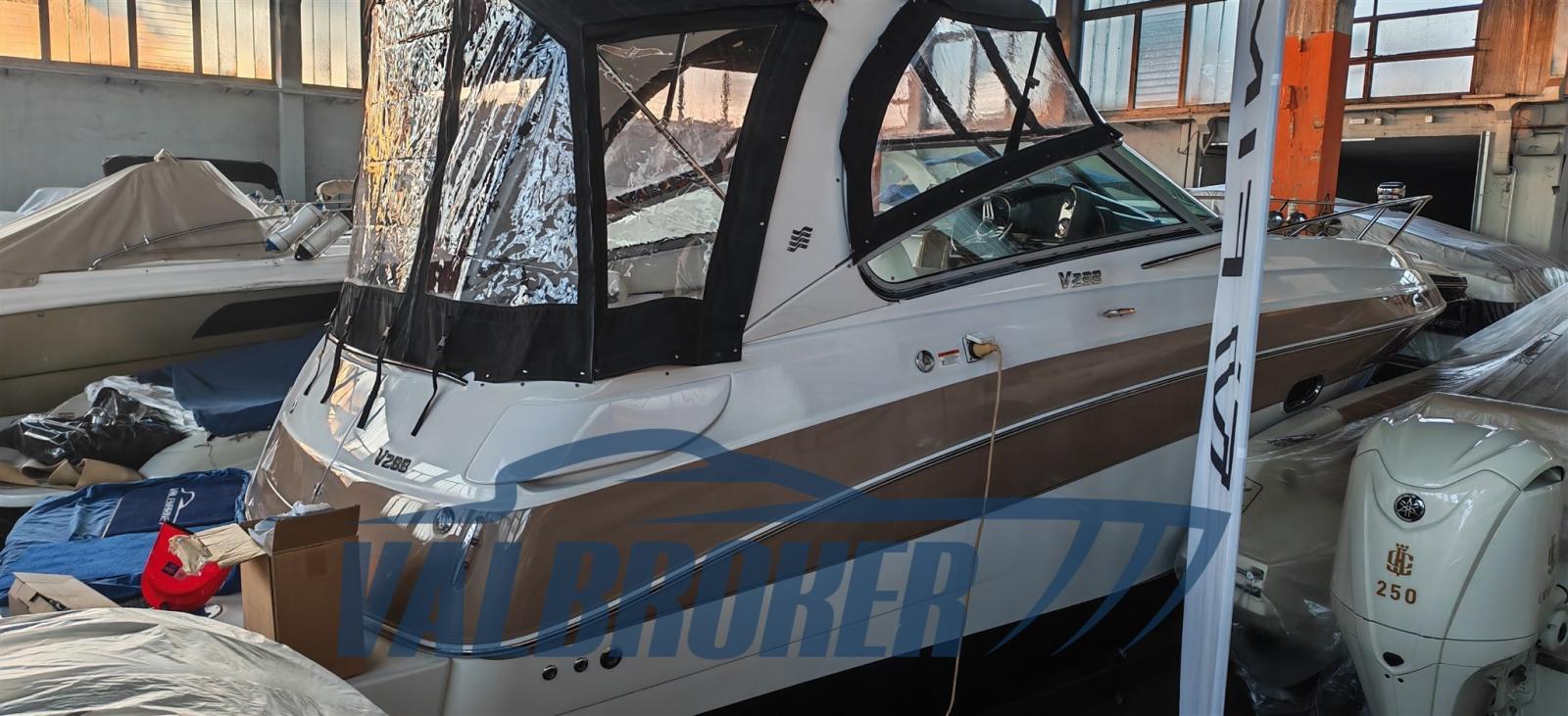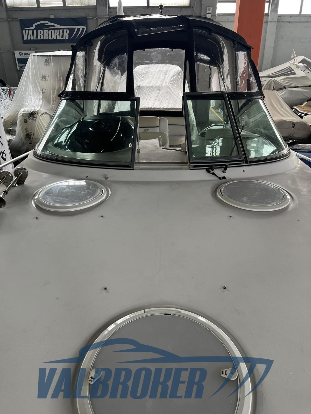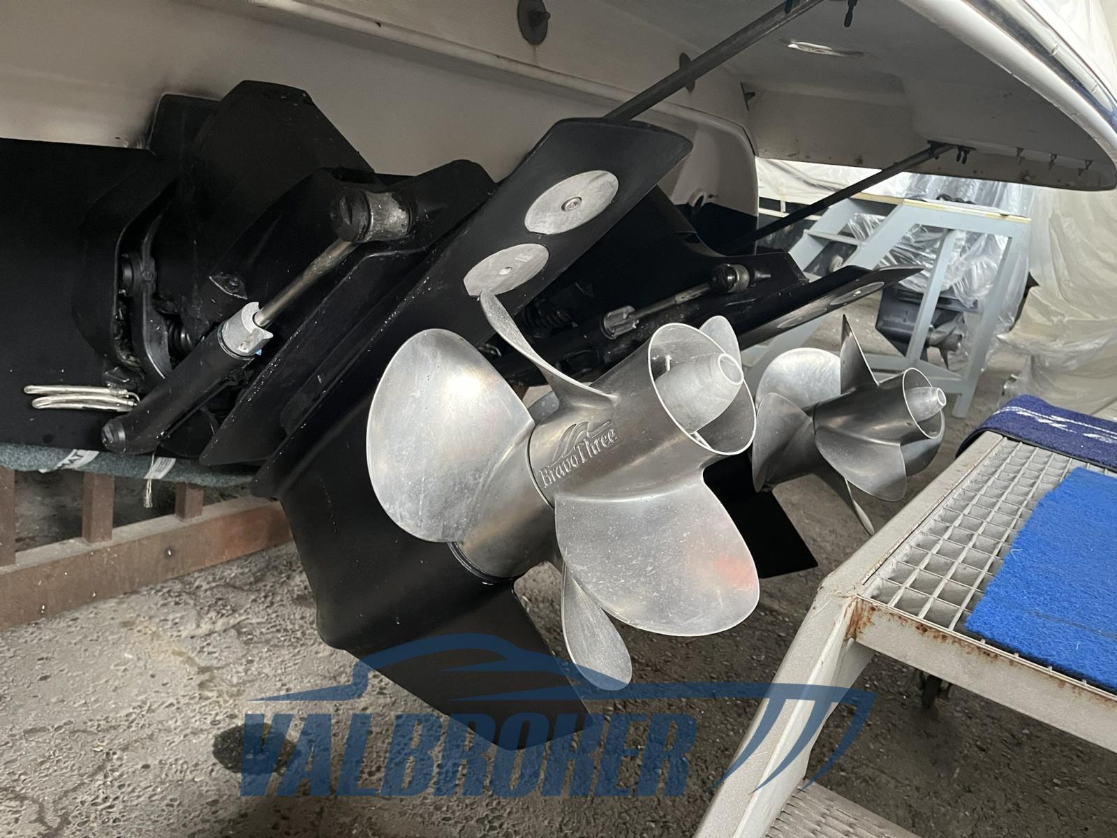 Settembre 2025: motori 5.0 da 260 HP sbarcati per essere sostituiti con 2x MERCRUISER 320 HP V8 6.2 BRAVO 3 benzina del 2010. Comodo accesso a prua attraverso l'apertura centrale del parabrezza.