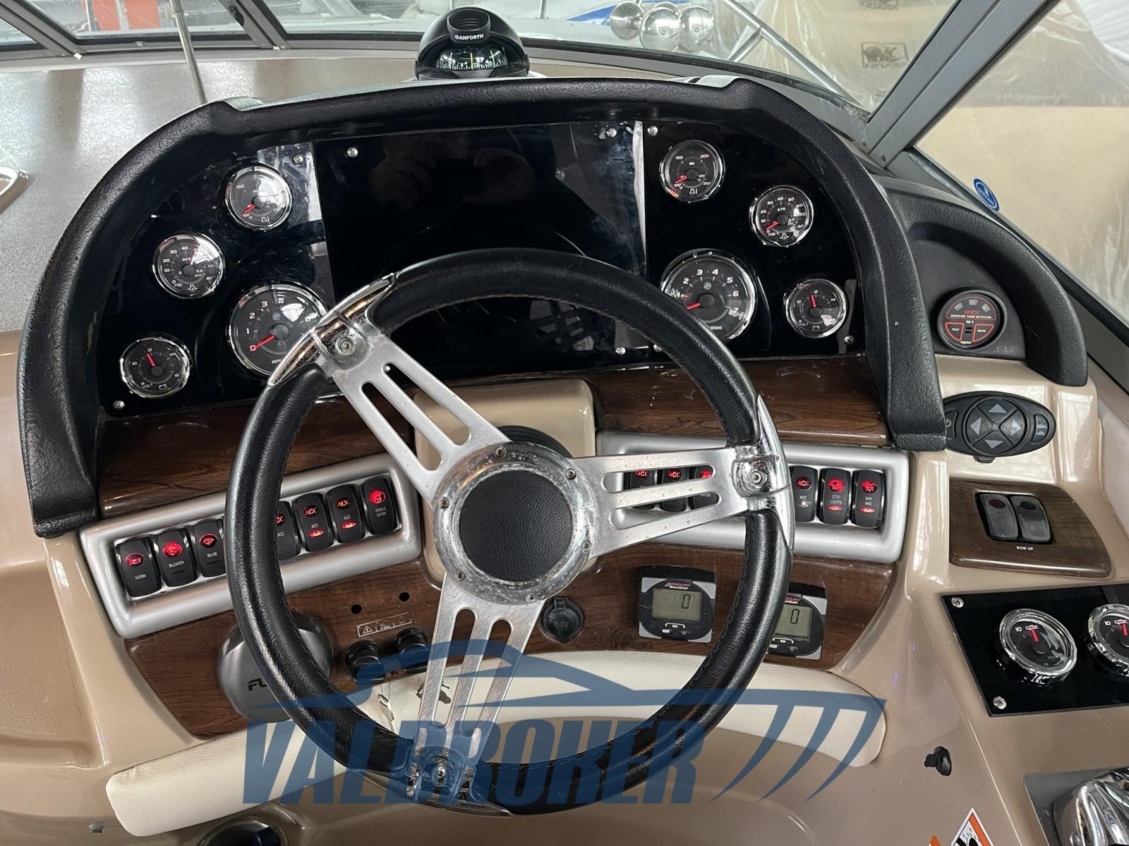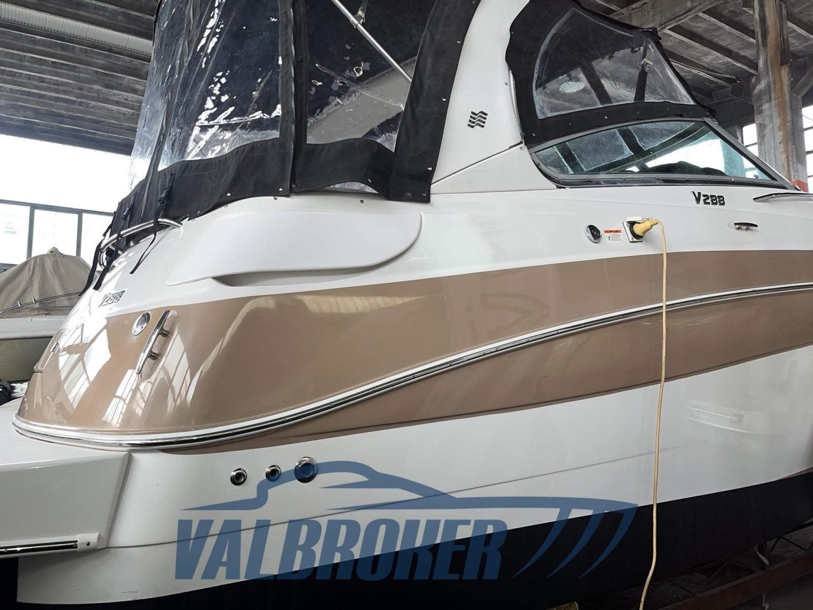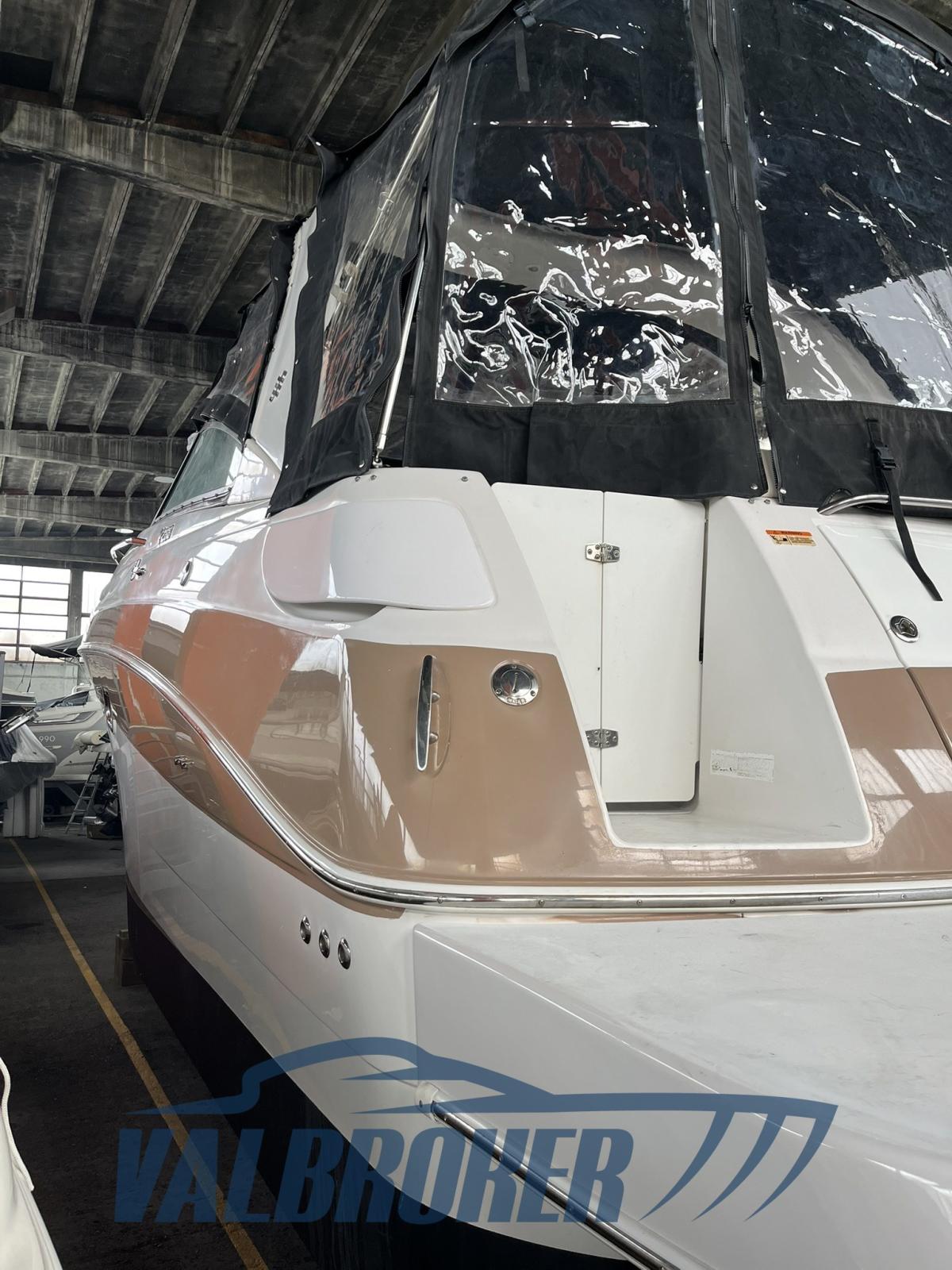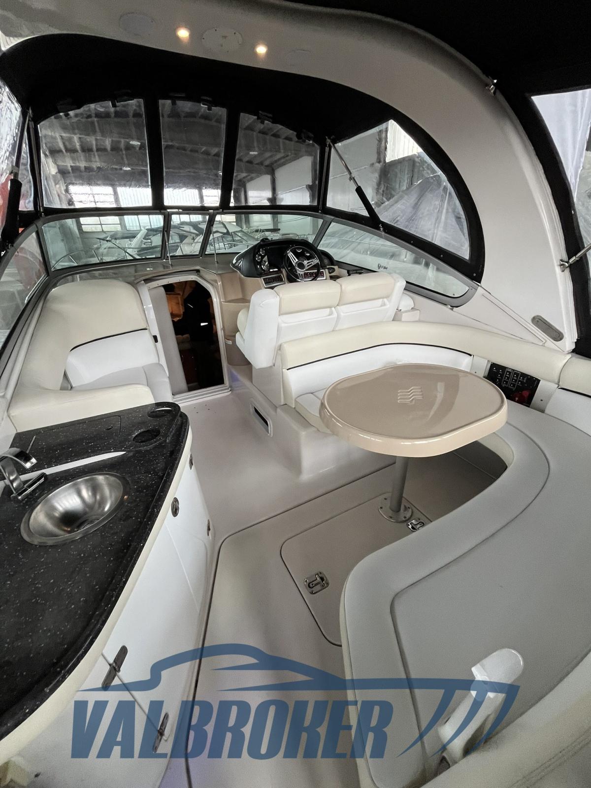 Settembre 2025: motori 5.0 da 260 HP sbarcati per essere sostituiti con 2x MERCRUISER 320 HP V8 6.2 BRAVO 3 benzina del 2010. Comodo accesso a prua attraverso l'apertura centrale del parabrezza.