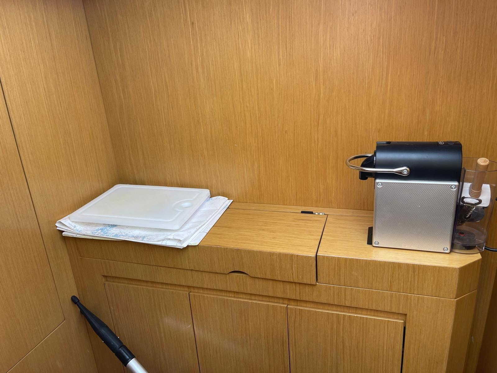 Angolo barra, Display, Ecoscandaglio (Raymarine), GPS (Raymarine C120), Plotter con antenna GPS, Radio VHF (Raymarine Ray 24OE), Sedile Copilota.